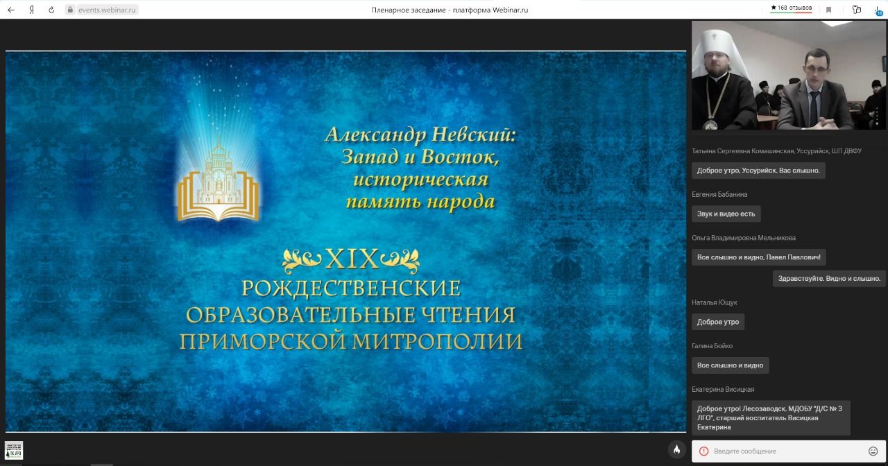 26 ноября 2020 года состоялось пленарное заседание регионального этапа XXIX Международных Рождественских образовательных чтений «Александр Невский: Запад и Восток, историческая память народа» — Рождественских чтений Приморской митрополии.