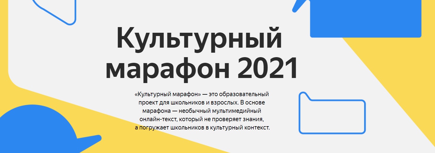 «Мы объявляем о начале уже третьей всероссийской акции “Культурный марафон”. Министерство культуры вместе с Министерством просвещения и Яндексом проводят её ежегодно в рамках проекта “Культура для школьников”. В этом году “Культурный марафон” посвящён кинематографу — 125 лет назад в России прошёл первый киносеанс. Так что приглашаем детей, родителей и учителей отправиться в увлекательное путешествие по миру кино. Для каждого возраста эксперты подготовили разные мультимедийные онлайн-тесты, поэтому интересно и познавательно будет абсолютно всем. Здесь не будет победителей и проигравших, а шанс получить приз — грамоту, сертификат и много других подарков — есть у каждого участника».