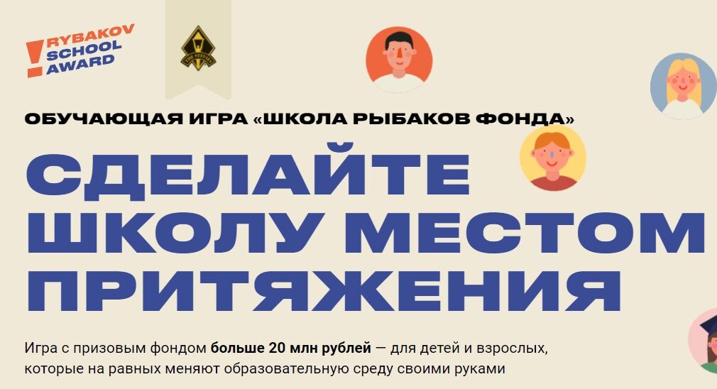 «Школа Рыбаков Фонда» – обучающая игра для учеников, педагогов, представителей администрации и семей, выпускников, филантропов и партнеров образовательных школ России.