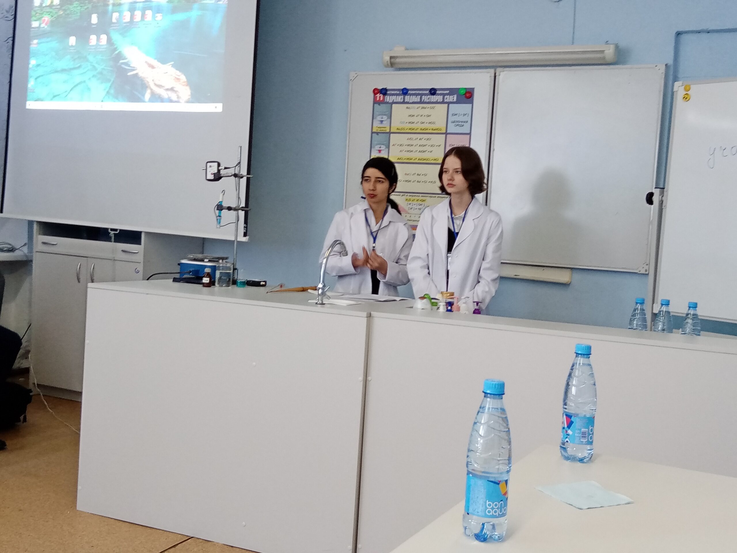 В рамках семинара педагоги и обучающиеся центра продемонстрировали опыт использования специализированного оборудования центров в образовательном процессе.  Были организованы открытые уроки с использованием оборудования центра «Точка роста»: «Последовательное соединение проводников» – урок физики в 8 классе (учитель физики – Сушильникова Н.И.), «Гидролиз солей» – урок химии в 11 классе (учитель химии – Михаревич Е.А.).
