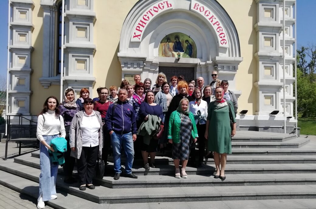 Учителя посетили Покровский собор г. Владивостока, где для них была проведена экскурсия как по территории, так и в самом соборе. Особое внимание было уделено истории иконы Порт-Артурской Божьей Матери.
