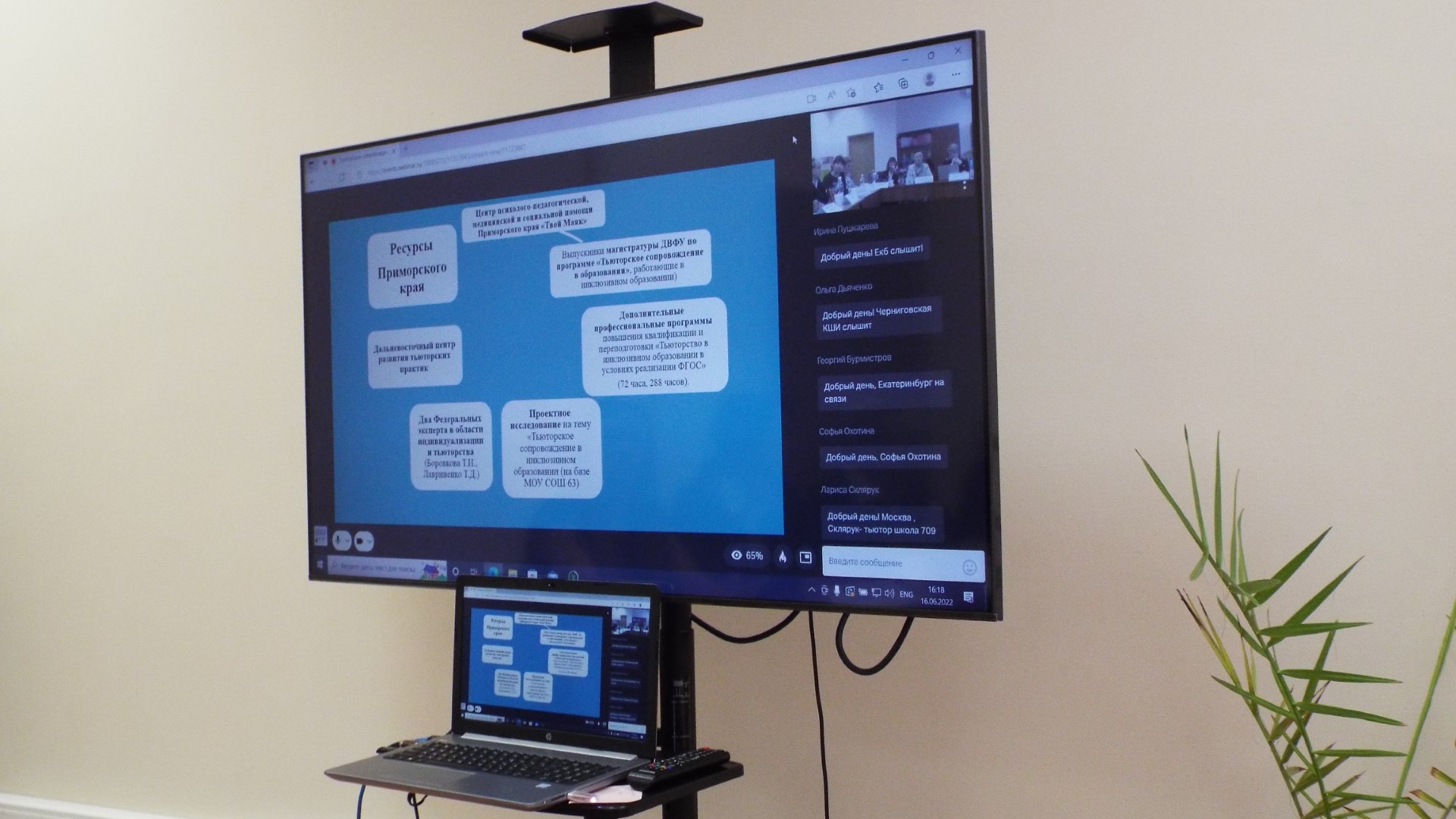 Участники круглого стола из Приморского края, совместно с коллегами-тьюторами из других регионов Российской Федерации (Московская область, Новосибирск, Томск, Тюмень) обсуждали проблемы тьюторского сопровождения детей с особыми потребностями, делились лучшими практиками по данному направлению. Среди представленных практик и тем для обсуждения значились «Формирование коммуникативных навыков учащихся начальных классов с ограниченными возможностями здоровья на примере модели «Квадрат взамодействия»»,  «Практики тьюторского сопровождения развития предпринимательского мышления старшеклассников», «Нейрографика, как инструмент тьюторского сопровождения».