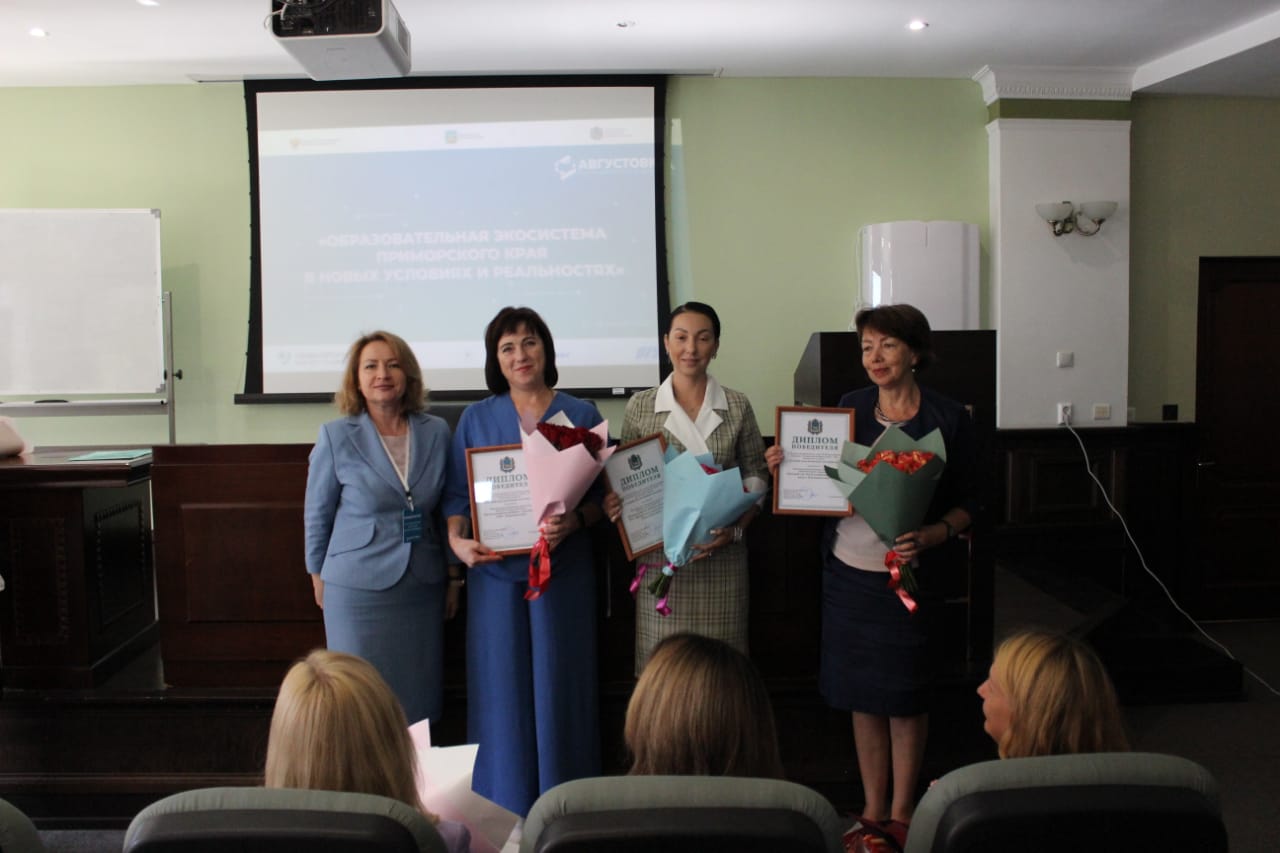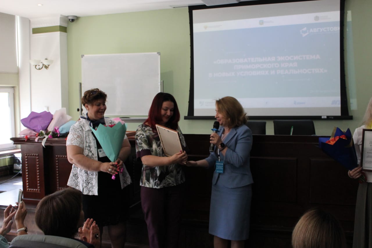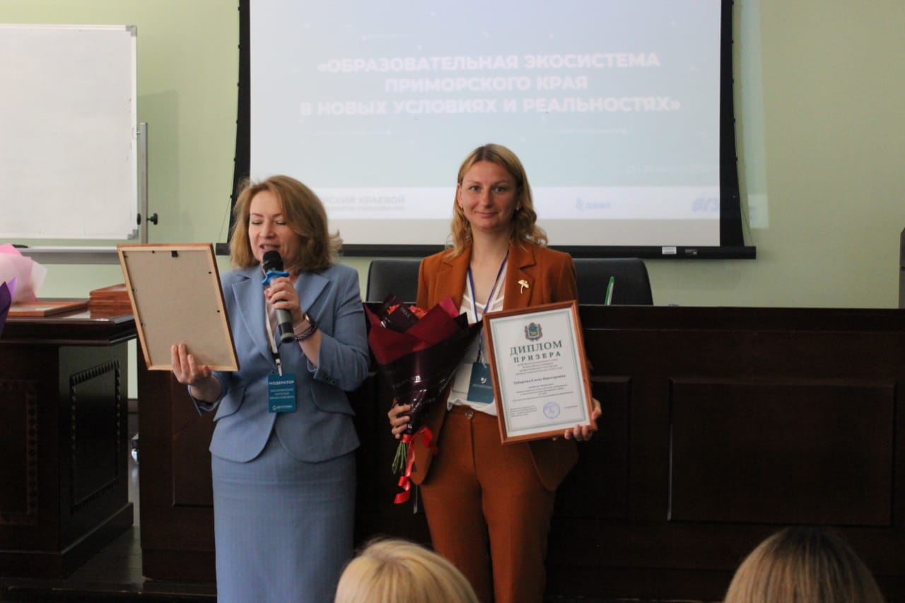 Конкурсы проводились Министерством образования Приморского края совместно с «Приморским краевым институтом развития образования». Награды победителям и лауреатам вручила заместитель министра образования Василянская Наталья Вячеславовна.