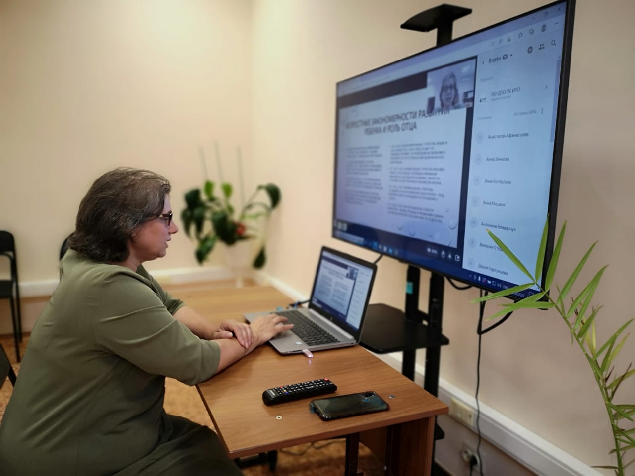 Ведущей вебинара стала Ермолаева Светлана Алексеевна, педагог-психолог ЦППМСП ПК «Твой Маяк», которая вместе с участниками подробно рассмотрела роль отца в психологическом развитии ребёнка: