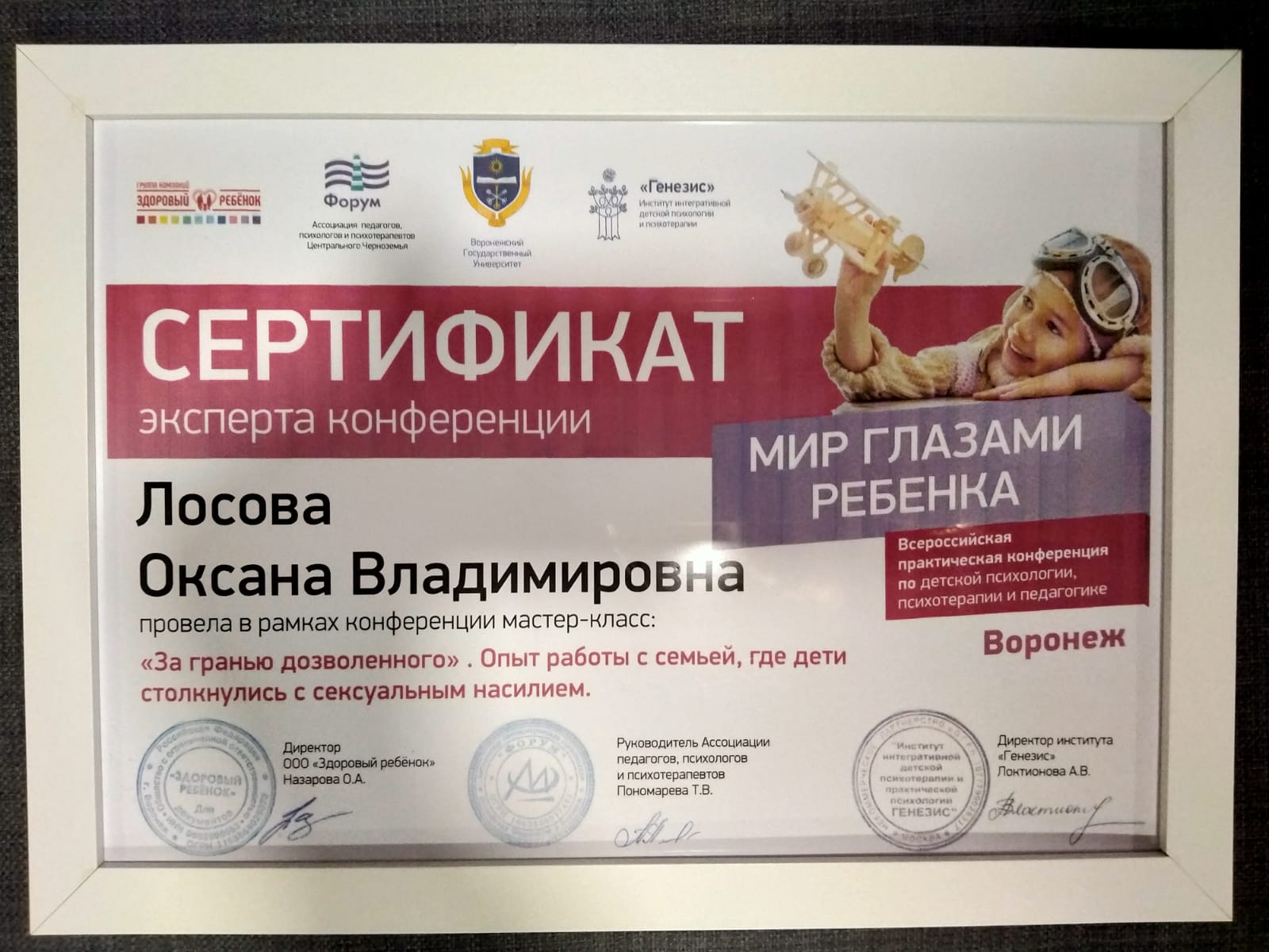 1-2 октября в г. Воронеж главный специалист Центра ППМС Приморского края «Твой Маяк» Лосова Оксана Владимировна в рамках «Всероссийской практической конференции по детской психологии, психотерапии и педагогике» провела мастер-класс на тему: «За гранью дозволенного. Опыт работы с семьей, где дети столкнулись с сексуальным насилием».