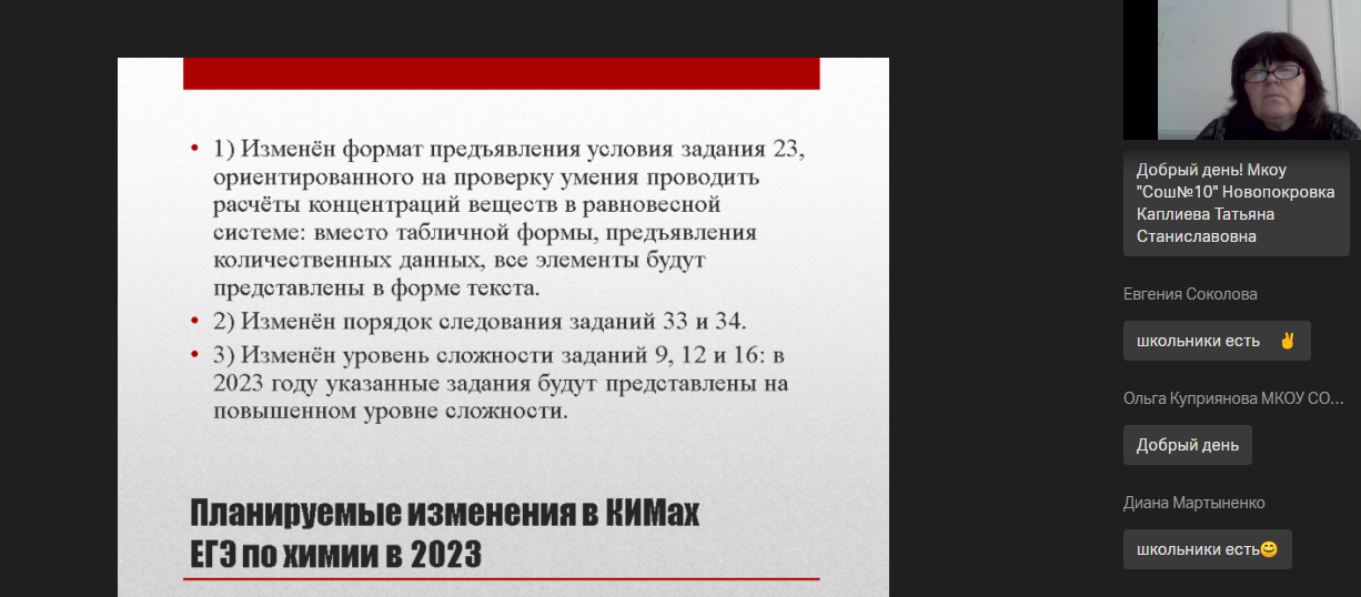 В обсуждении приняли участие более 80 учителей школ всех муниципальных районов Приморского края и выпускники, выбравшие экзамен по химии в 2023 году.