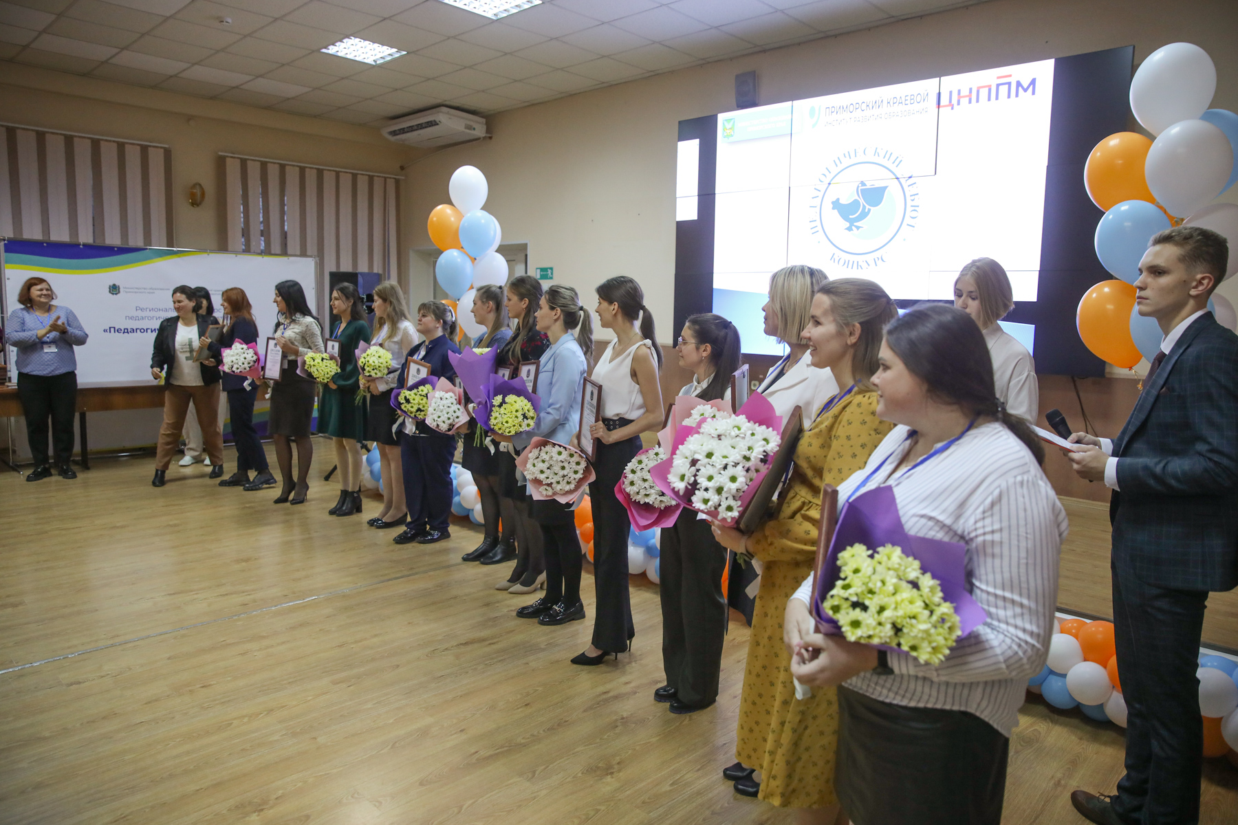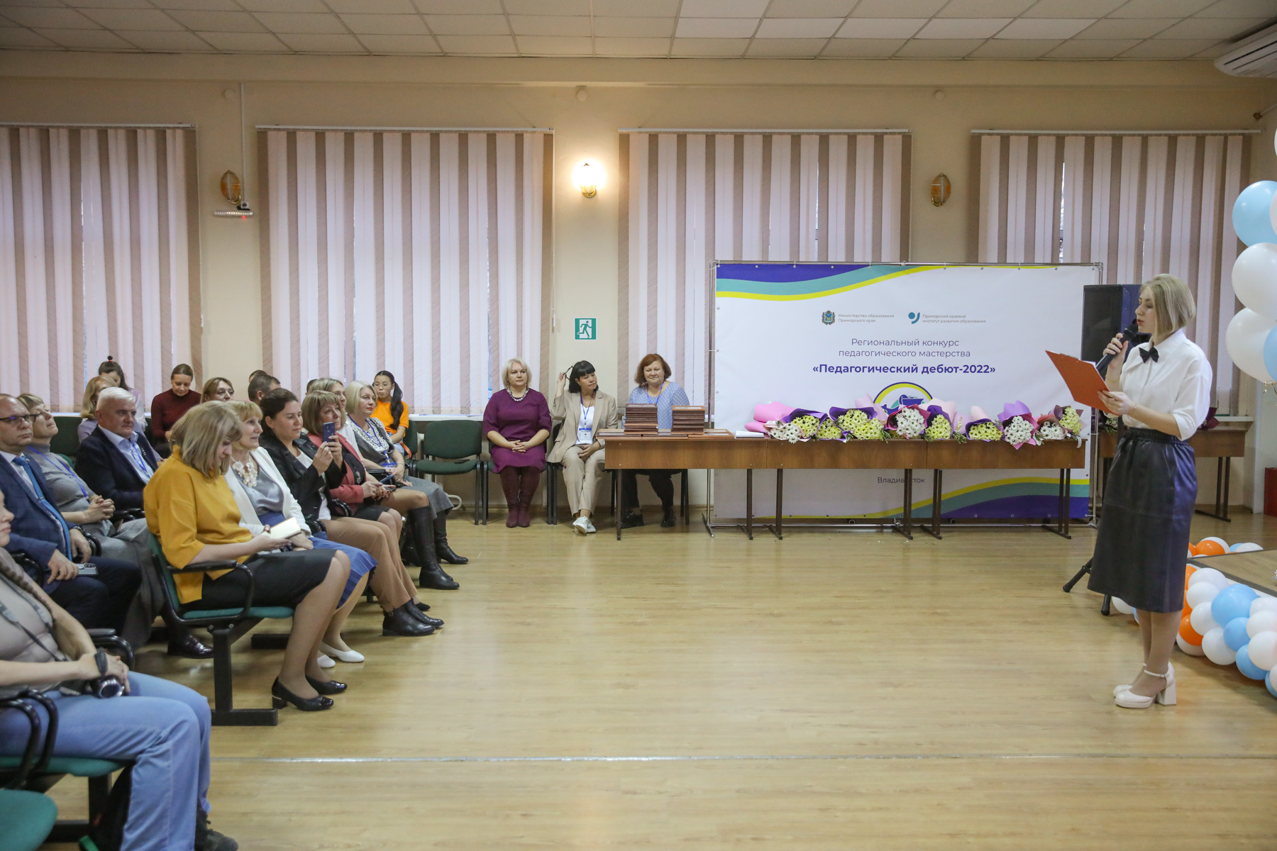 Мероприятие проходило в актовом зале Приморского краевого института развития образования, где собрались молодые педагоги и воспитатели Приморского края, прошедшие два насыщенных дня конкурсных испытаний.
