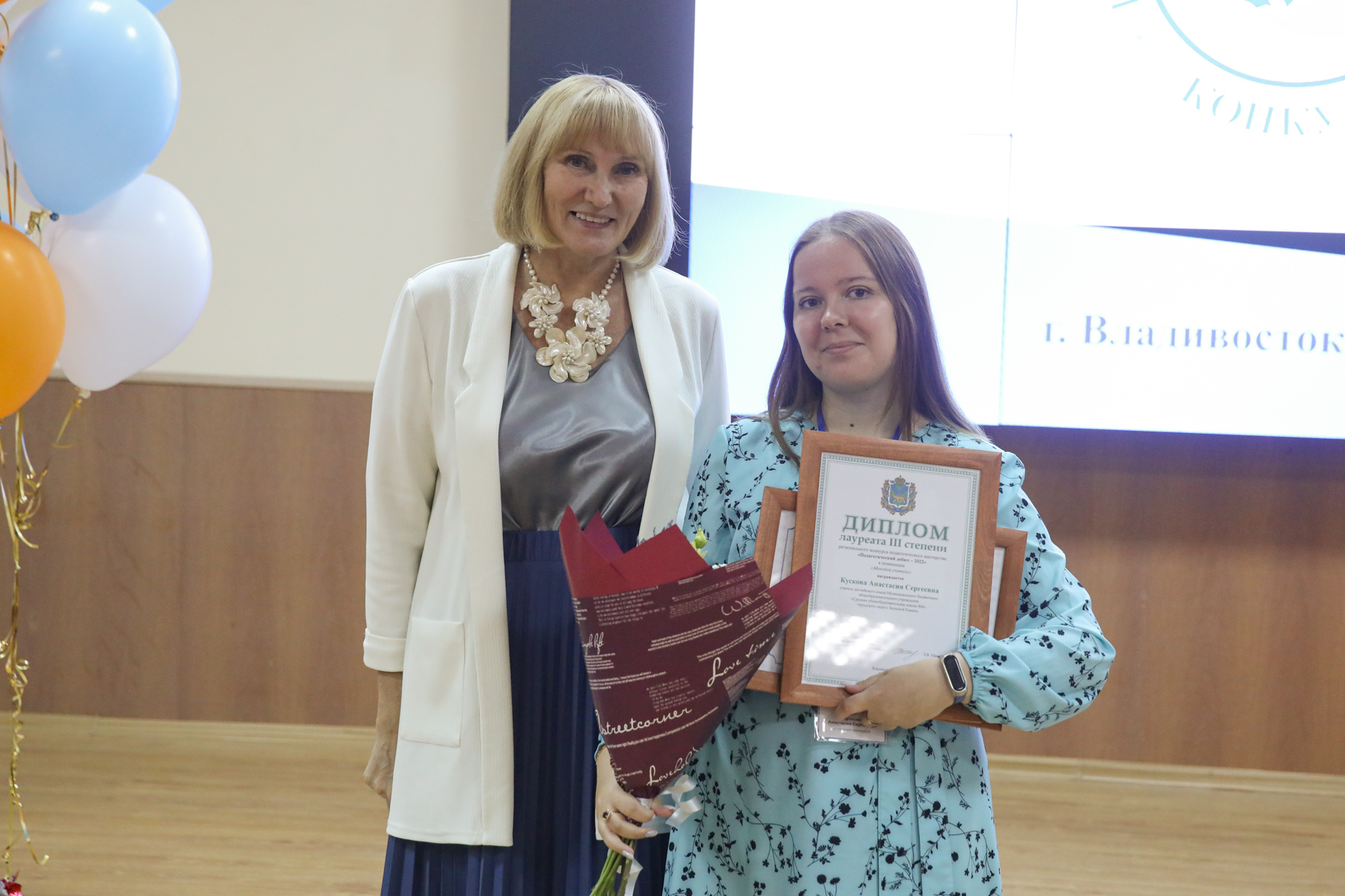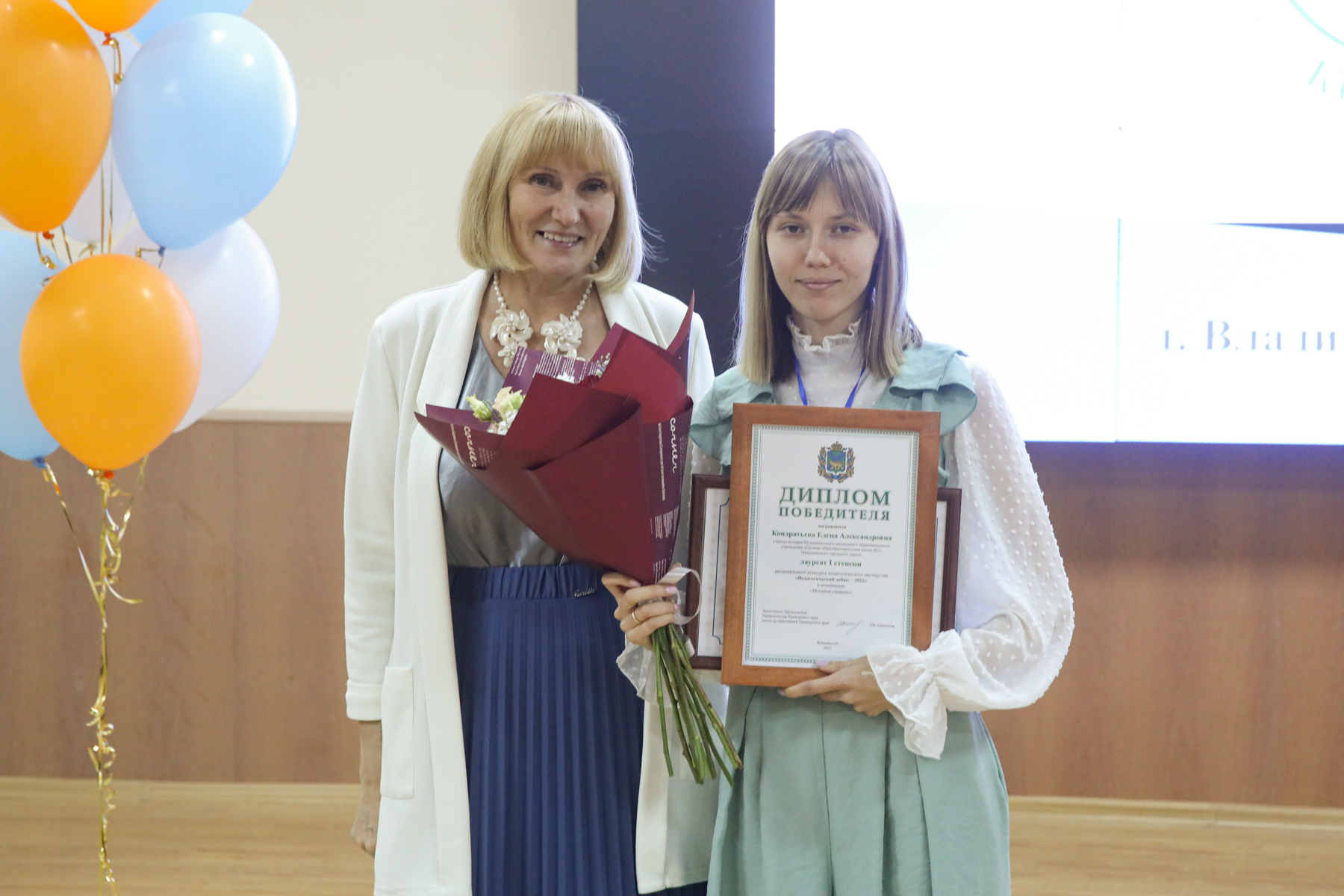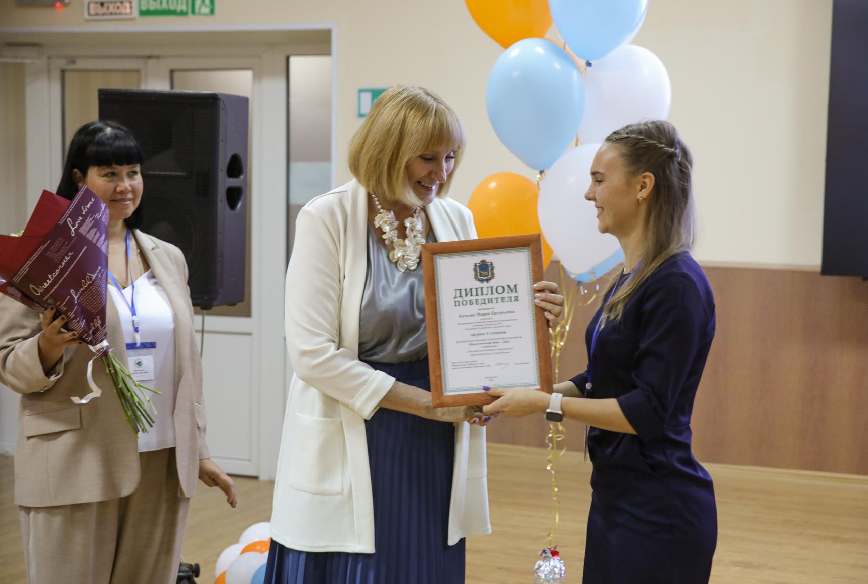 Участников конкурса в номинации «Молодой учитель» награждала председатель жюри – Анучина Олеся Владимировна, начальник отдела организационно-правового и кадрового обеспечения Министерства образования Приморского края, в номинации «Молодой воспитатель дошкольного образовательного учреждения» – председатель жюри – проректор по по развитию инновационной деятельности Ланская Наталия Витальевна.