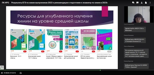 В программе вебинара были рассмотрены типичные ошибки при выполнении КИМов ЕГЭ по химии по результатам 2022 года, даны методические рекомендации по подготовке школьников к ЕГЭ по химии, а также проведен обзор учебно-методических пособий для изучения химии на профильном уровне.