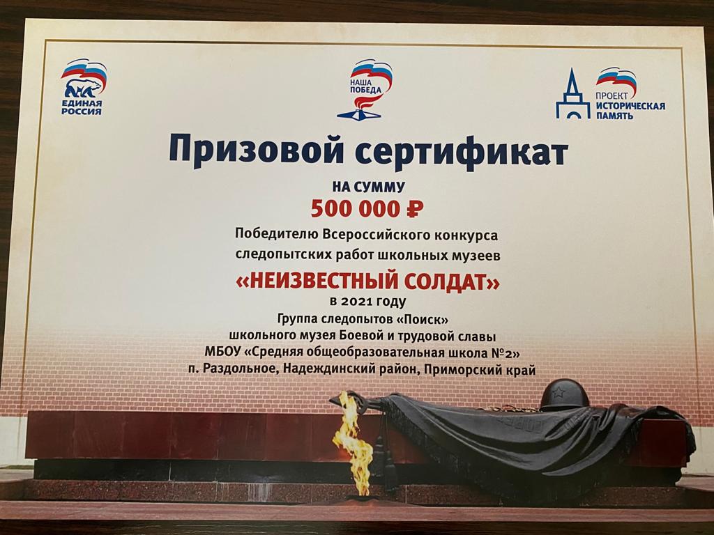 В МБОУ СОШ №2 посёлка Раздольное Надеждинского МР появилась своя хоккейная команда «Стрела». В рамках школьного спортивного клуба работают спортивные секции по волейболу, баскетболу. Ученики не только занимаются спортом: организован театральный кружок «Ровесник», школьный хор, кружок «Краеведение», школьный музей Боевой славы. В 2021 году группа следопытов «Поиск» стала победителем Всероссийского конкурса следопытских работ школьных музеев в номинации «Лучший школьный сельский музей» в Дальневосточном федеральном округе. Полученный приз в размере 500 000 тысяч рублей использовали для модернизации музея.