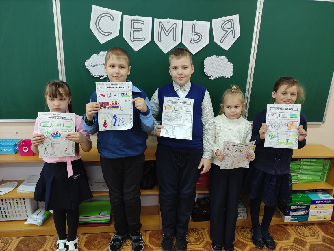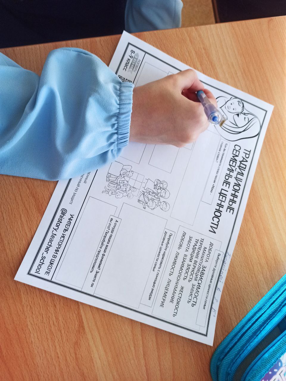 Чаще всего мы понимаем, что традиционные ценности – это ценность материнства и отцовства; ценность детства, трудолюбия и созидания; ценность милосердия и терпения; здоровье и благополучие близких тебе людей. Для поддержания идеи благополучия и сохранения семьи классные руководители постарались подобрать такие задания, чтобы ребятам было интересно и познавательно: рисовали свою семью, создавали генеалогические древа, рассказывали о своих родных и обсуждали обращения известных людей.