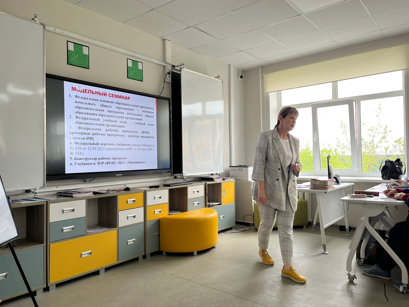 Целевой аудиторией события стали руководители муниципальных методических объединений учителей начальных классов, заместители директоров по УВР. Цель семинара заключалась в конструировании алгоритма деятельности учителя начальных классов, реализующего обновленный ФГОС и федеральные основные образовательные программы. Основная перспективная задача участников события по принципу каскадной модели повышения квалификации – сконструировать и провести подобные семинары в своих образовательных организациях и в своих методических объединениях с тем, чтобы как можно большее количество учителей начальных классов овладели алгоритмом приведения в соответствие с ФООП и ФРП собственной учебно-методической документации, в частности рабочих программ по учебным предметам, выявили недостающие или избыточные компоненты предметного содержания в используемых учебниках и учебных пособиях в сравнении с содержанием федеральных рабочих программ по русскому языку, окружающему миру, литературному чтению. Одной из задач семинара была актуализация компетенций по организации ведущей деятельности младших школьников и проектирования уроков в соответствии с компонентами учебной деятельности.