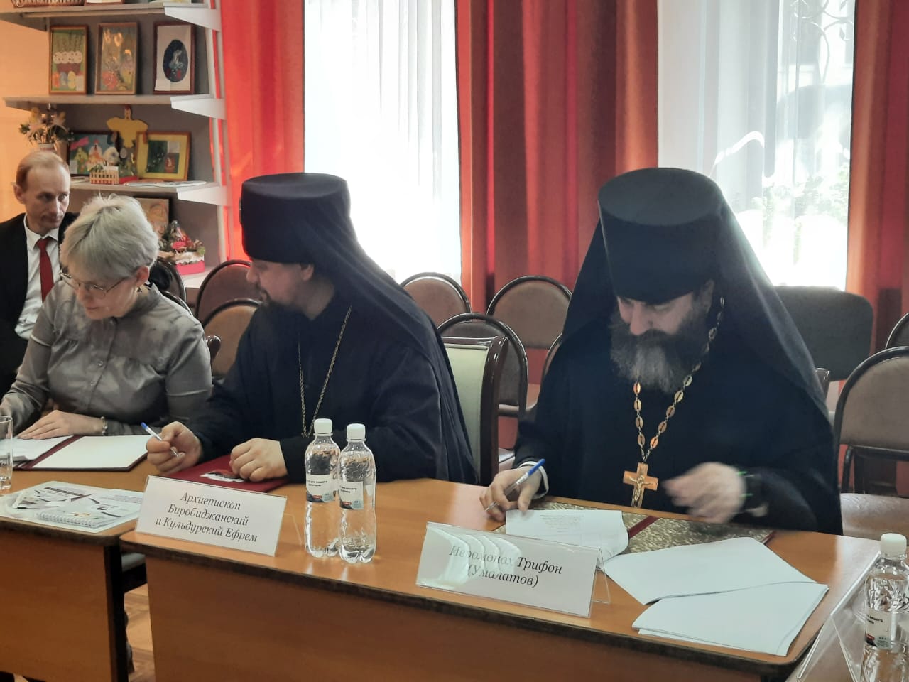 В церемонии закрытия участвовали председатель оргкомитета межрегионального этапа Конкурса Архиепископ Биробиджанский и Кульдурский Ефрем, исполнительный директор координационного комитета Конкурса, президент автономной некоммерческой организации «Поколение», заведующий сектором мероприятий и конкурсов Синодального отдела религиозного образования и катехизации Русской Православной Церкви иеромонах Трифон (Умалатов), начальник департамента образования Еврейской автономной области Наталья Николаевна Соловченкова.