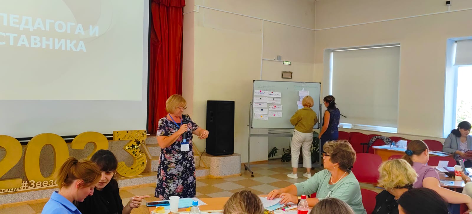 Педагог-психолог, проводя свой мастер-класс «Профориентация школьников. Наставничество в выборе профессии», вернула педагогов в юность, где когда-то они выбирали свой жизненный путь, как сейчас это делают современные школьники. Как организовать эффективное наставничество показал фестиваль-конкурс «Больше, чем Учитель», где наставники представляли свои эффективные практики.
