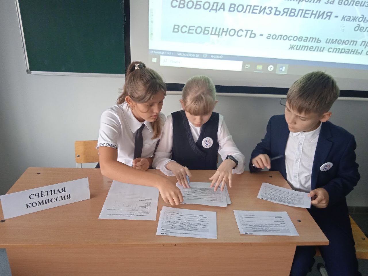 Ученики 5–7-х классов детально познакомились с избирательной системой России и принципами ее работы. Основная цель этих классных часов — формирование у детей четкой гражданской позиции, а также чувства ответственности за свое будущее и будущее страны. Классные руководители провели с ребятами комплексную деловую игру, из которой те узнали, какие принципы должны соблюдаться во время демократических выборов и как