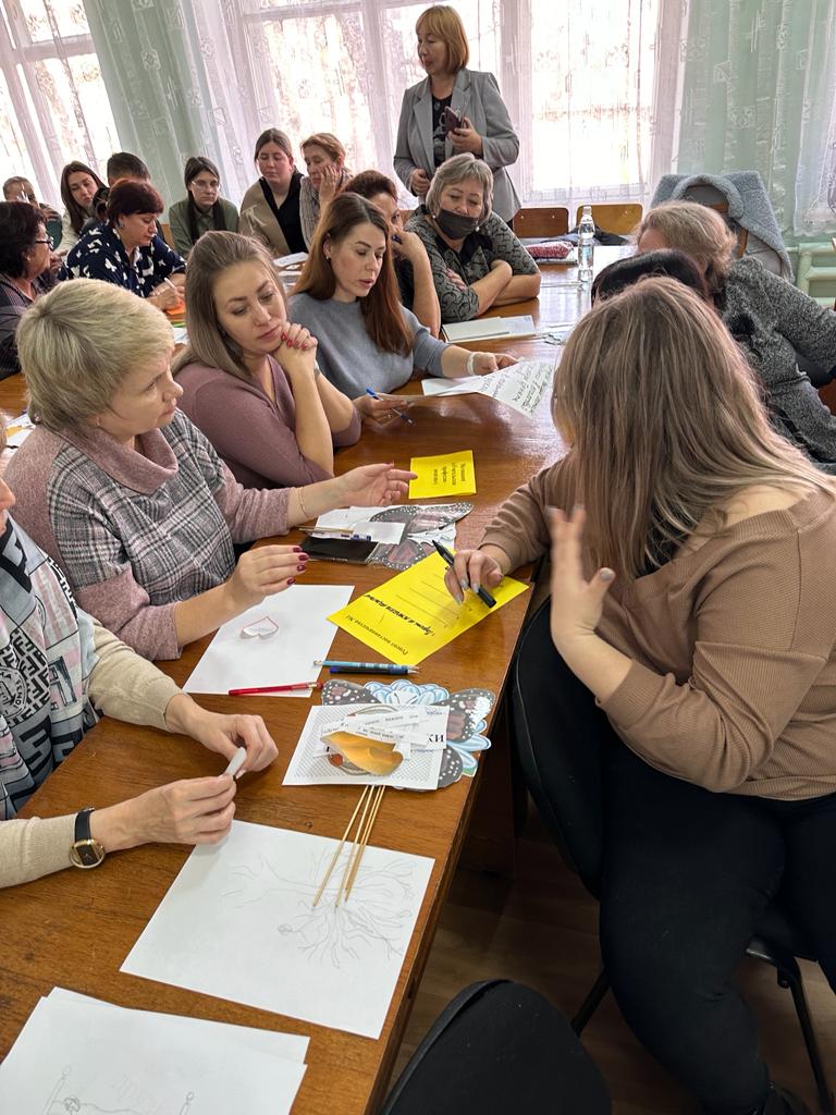 30 октября 2023 года на базе учебно-методического отдела МКУ «Управление образования Лесозаводского городского округа» состоялось заседание муниципальной Школы наставничества «Мы вместе» по теме: «Разговор по душам». Цебро Елизавета Викторовна, старший воспитатель, и Шиндякина Елена Сергеевна, музыкальный руководитель МДОБУ “Д/С 7 ЛГО”, провели увлекательный мастер-класс «Профилактика профессионального выгорания и стрессовых состояний педагогов в профессиональной деятельности», научили педагогов справляться с жизненными трудностями и избавляться от негатива при помощи различных техник. Болтенко Елена Степановна, учитель русского языка и литературы МОБУ СОШ 4 ЛГО, провела деловую игру «Мировое кафе», в ходе которой, педагоги проявили креативность и продемонстрировали чувство юмора. Неформальная встреча педагогов прошла в атмосфере творчества, доброжелательности и позитива! Ждем новых профессиональных встреч в Школе наставничества!