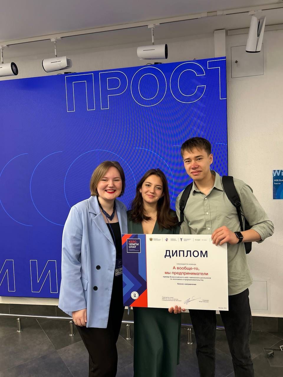 В результате сложнейшего конкурса команда по бизнес-направлению «А вообще-то, мы предприниматели» ( Архипов Вячеслав и Кравец Елизавета, г. Находка, 11 класс, МАОУ Гимназия №1) вышла в супер финал и стала призером супер – финала.