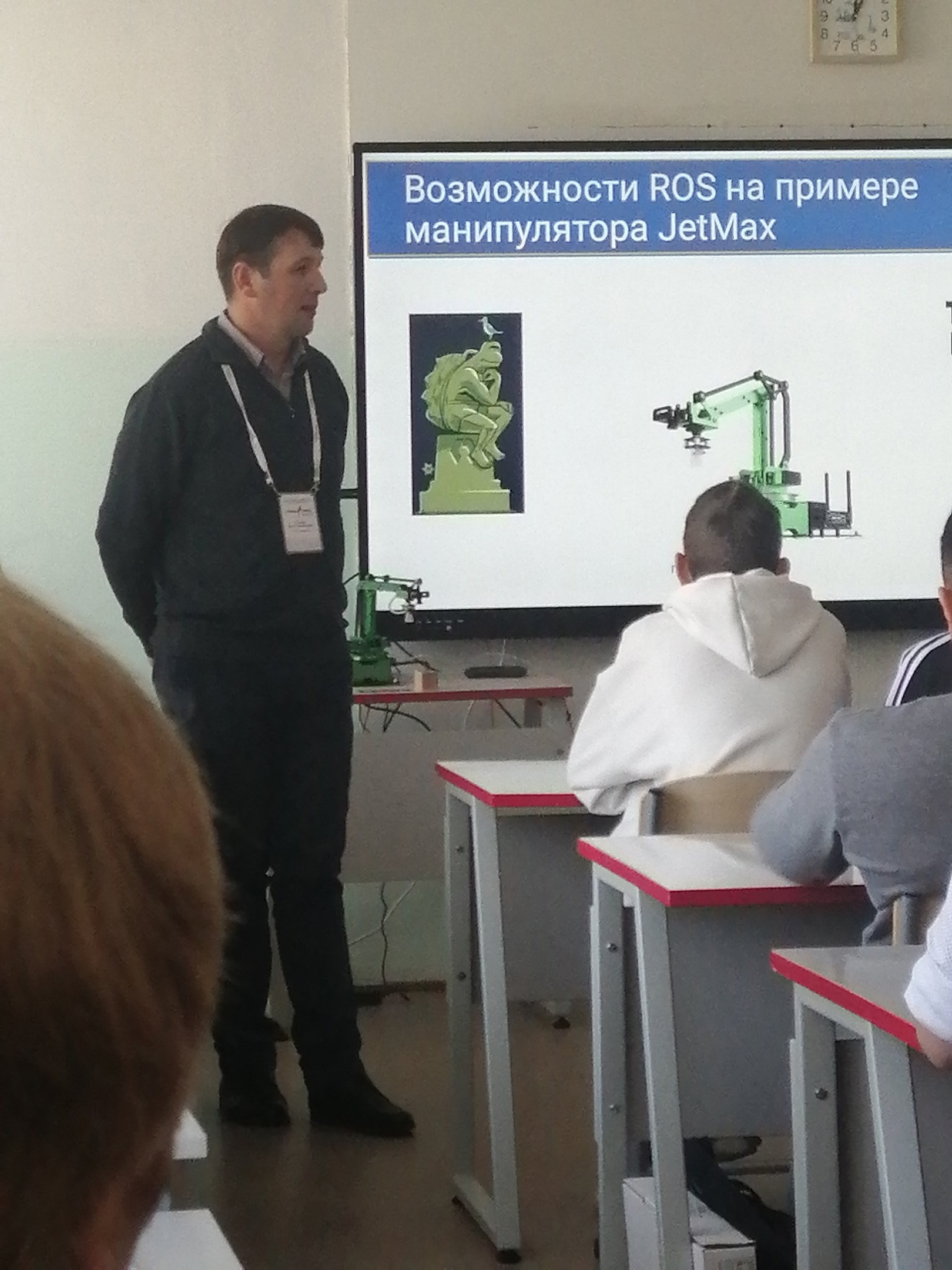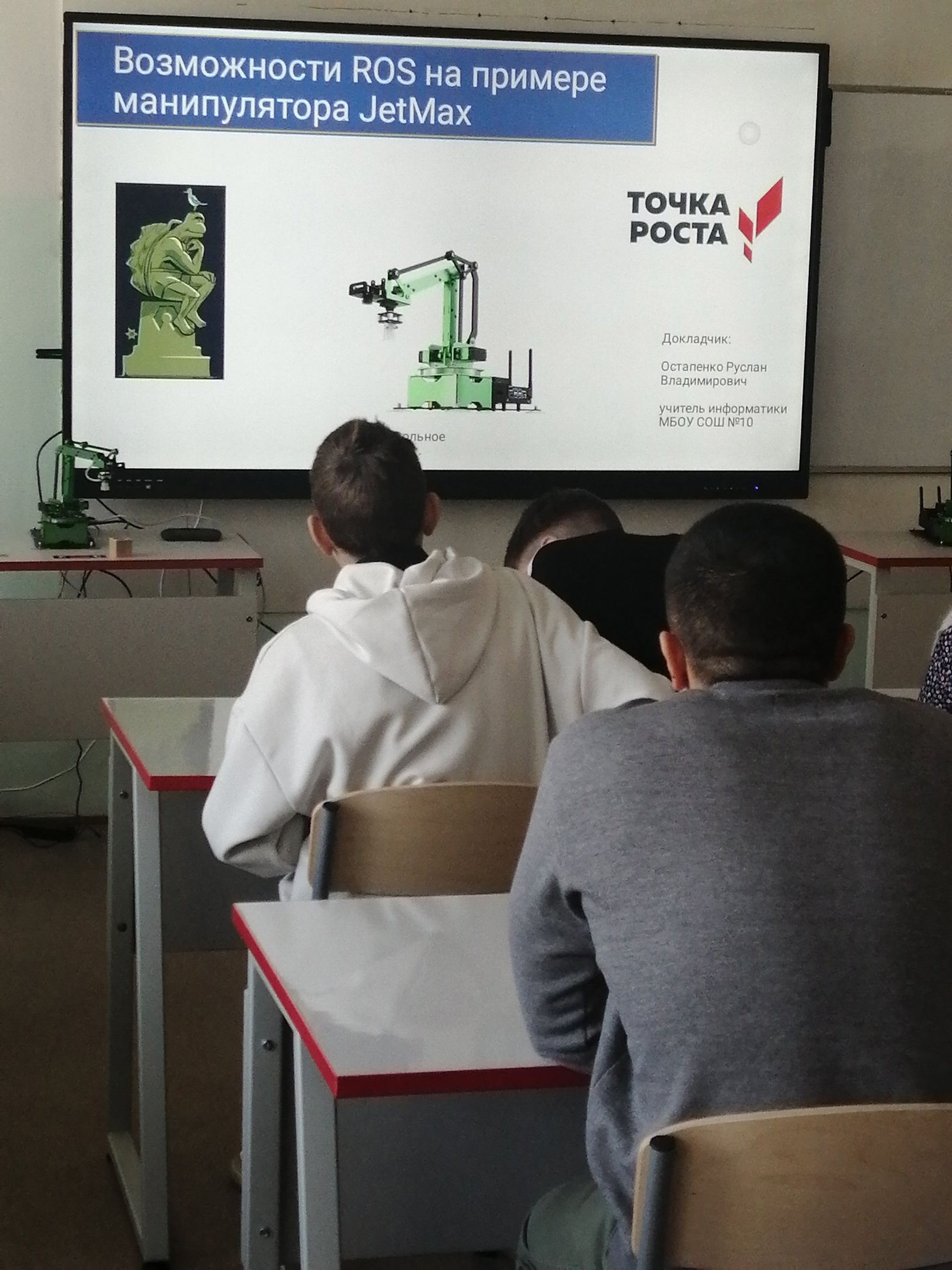 Учитель информатики Остапенко Руслан Владимирович не первый год работает с операционной системой LINUX, поэтому он поделился опытом работы с этой ОС, рассказал о том, как установить, настроить, обновить ASTRA LINUX на ноутбуках «Точки Роста». Руслан Владимирович также рассказал об операционных системах роботов ROS на примере манипулятора Jet Max.