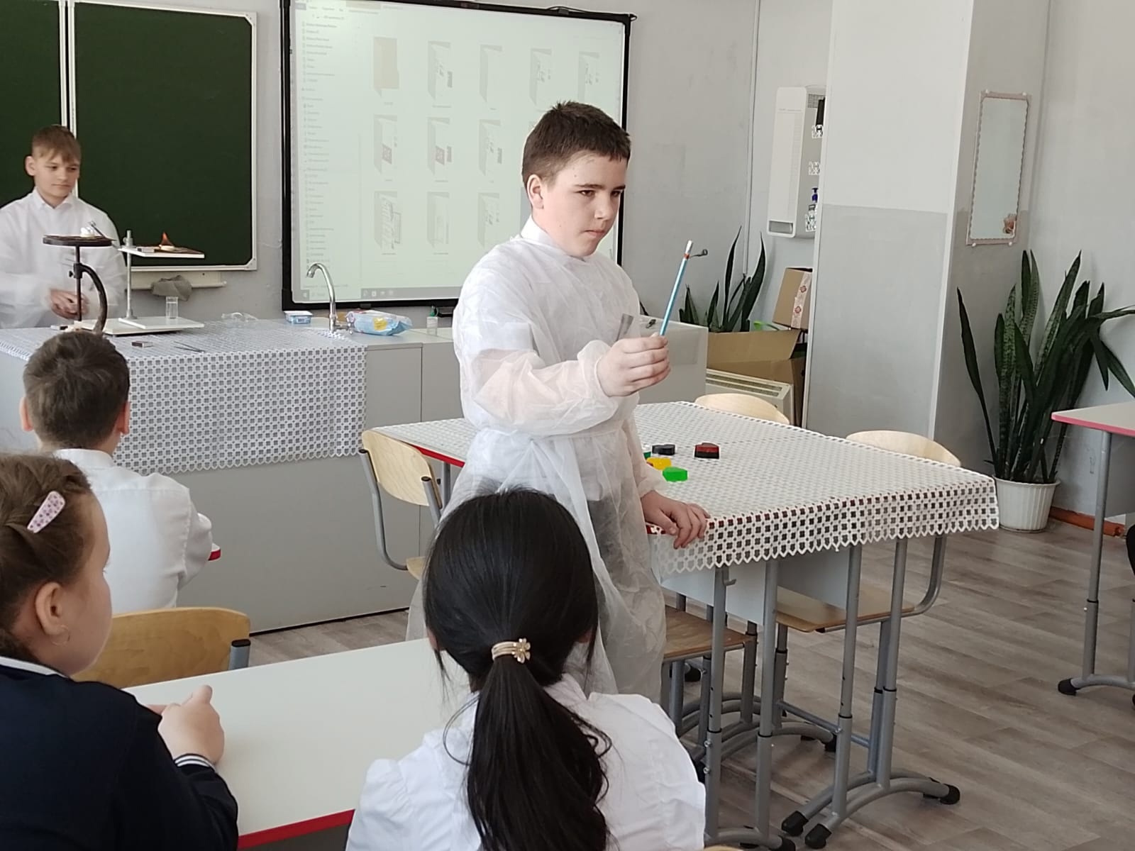 А под руководством учителя биологии Савкиной Н.Ф. ученики 6 класса продемонстрировали выполнение лабораторной работы по химии «Чудеса из чудес» для учащихся 5 класса.