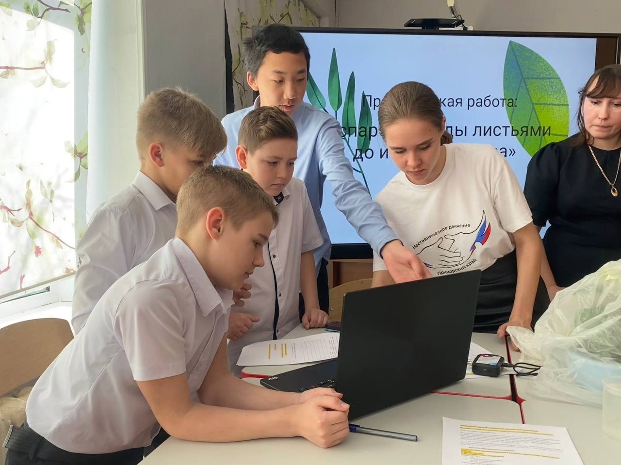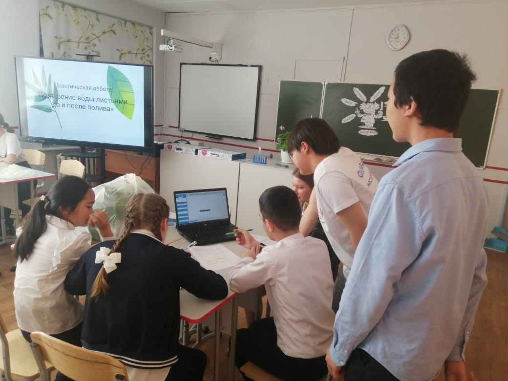 На внеурочном занятии «Физиология растений. Испарение воды листьями до и после полива» ученики-наставники (куратор наставников Холодова Н.В.) продемонстрировали опыты по измерению влажности почвы.