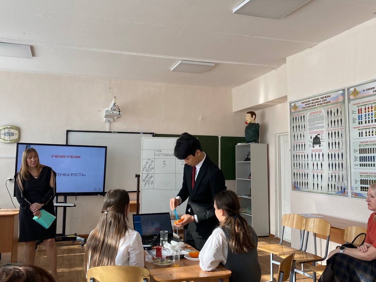 Во второй части семинара опытом работы с оборудованием центра «Точки роста» делились учителя и учащиеся МБОУ «Пограничная средняя общеобразовательная школа №2 имени Байко Варвары Филипповны Пограничного муниципального округа». На открытом внеурочном занятии учителя физики Жалнина И.А. «Проверим теорию» учащиеся 8 класса показали фрагмент лабораторного исследования.