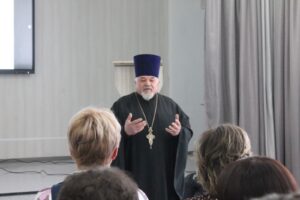 Капитанюк Владимир Николаевич, протоиерей православного прихода храма Вознесения Господня, рассказал о важности изучения Православной веры, сохранения и передачи этого бесценного богатства подрастающему поколению. Ведь Православие – культурообразующая религия России, и её обязательно должны знать наши дети. Особое внимание отец Владимир уделил тому, как складывалась система соработничества с управлением образования г.о. Спасск –Дальнего.