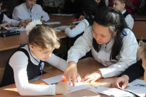 Югай Я. А., учитель начальных классов, советник директора по воспитательной работе МБОУ СОШ №5, запомнилась гостям необычным подходом к содержанию урока по теме «Любовь – вершина добродетели». Ей удалось интегрировать урок по православной культуре с киноуроком «За руку с Богом». Дети свободно рассуждали о добре и добродетели, о благоразумии и внимании к ближним. Затем при помощи волонтеров планировали социальные практики, направленные на помощь ближним. «Обращение к жизненному опыту», «формирование активной жизненной позиции школьников», «неподдельный интерес детей к теме урока», «фильм «За руку с Богом» – показан в тему, уместно», «Яна Андреевна, благодарим за классную внеурочку!».