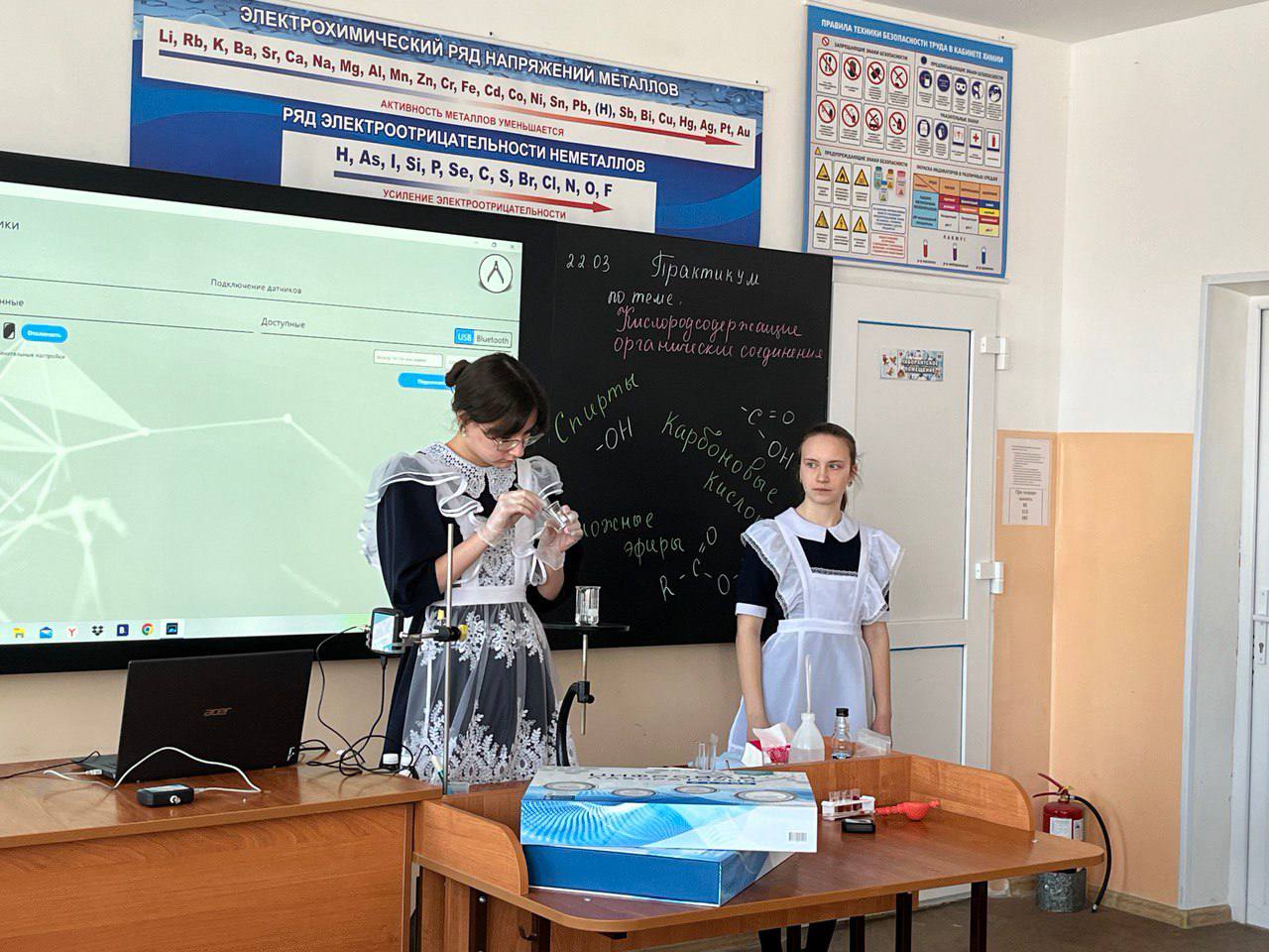 Учителя школы поделились опытом организации проектной деятельности с использованием лабораторного и робототехнического оборудования. Хафоева Валерия Александровна, учитель физики, рассказала об интеграции робототехники и физики, она провела лабораторию «Робототехника как объект изучения в курсе физики». Кобылянская Ирина Анатольевна, заинтересовала гостей семинара проблемой «Можно ли сделать электрический двигатель самому?». Галямова Ирина Александровна, учитель химии, провела мастер-класс «Использование цифровой лаборатории при изучении органической химии» (раздел тем: «Кислородосодержащие вещества»). Квиташ Константин Сергеевич, учитель биологии, на открытом уроке продемонстрировал технологию проектного обучения при изучении темы «Двудольные и однодольные растения» с использованием лабораторного оборудования.