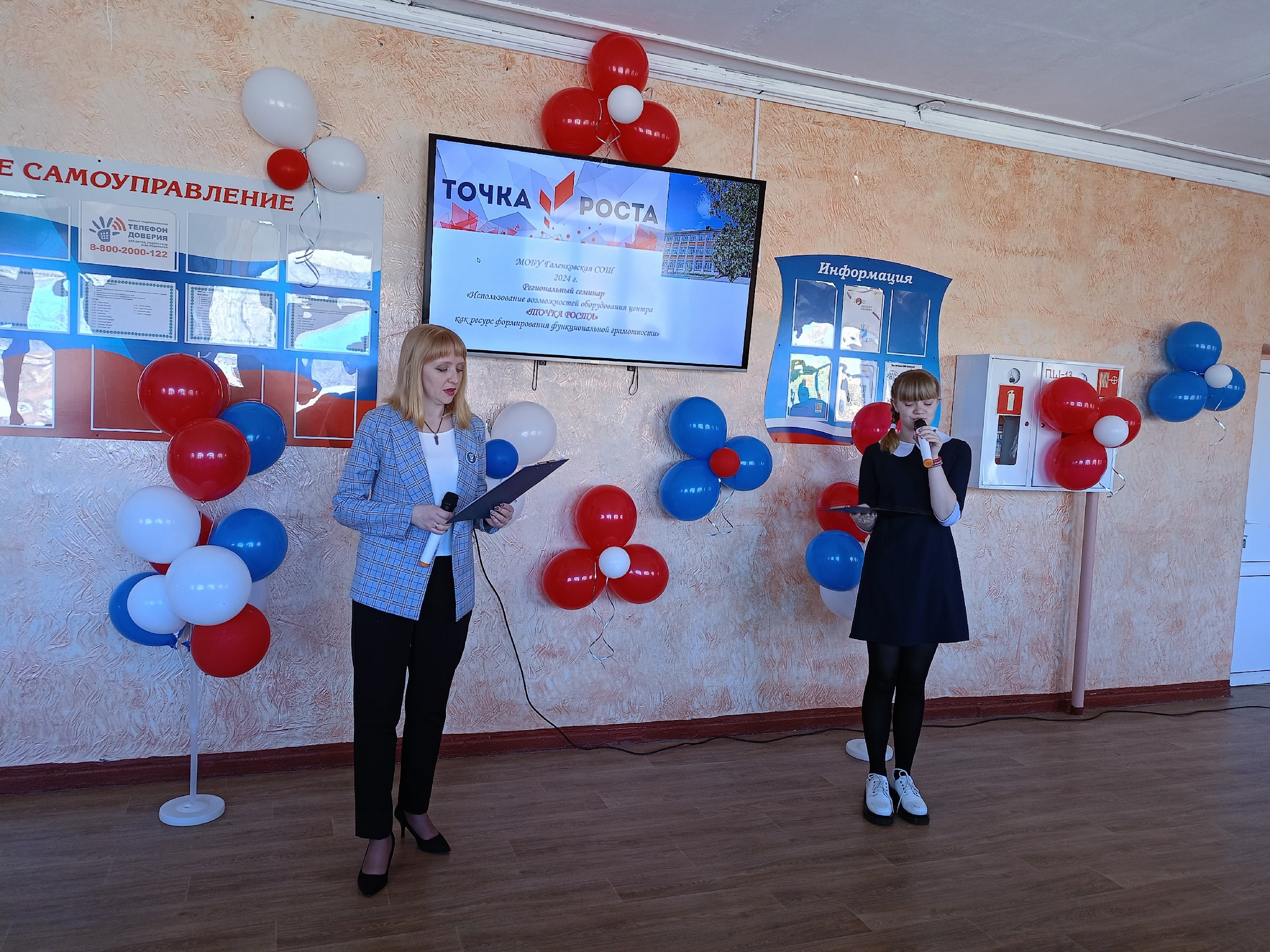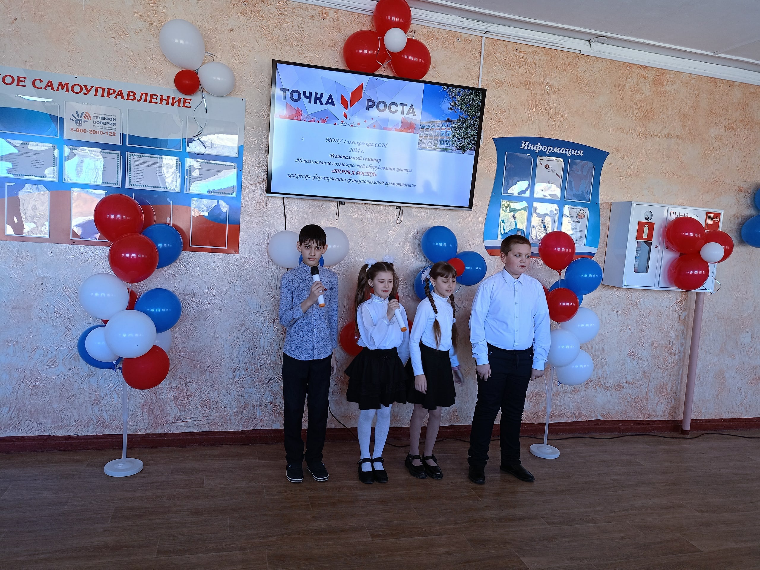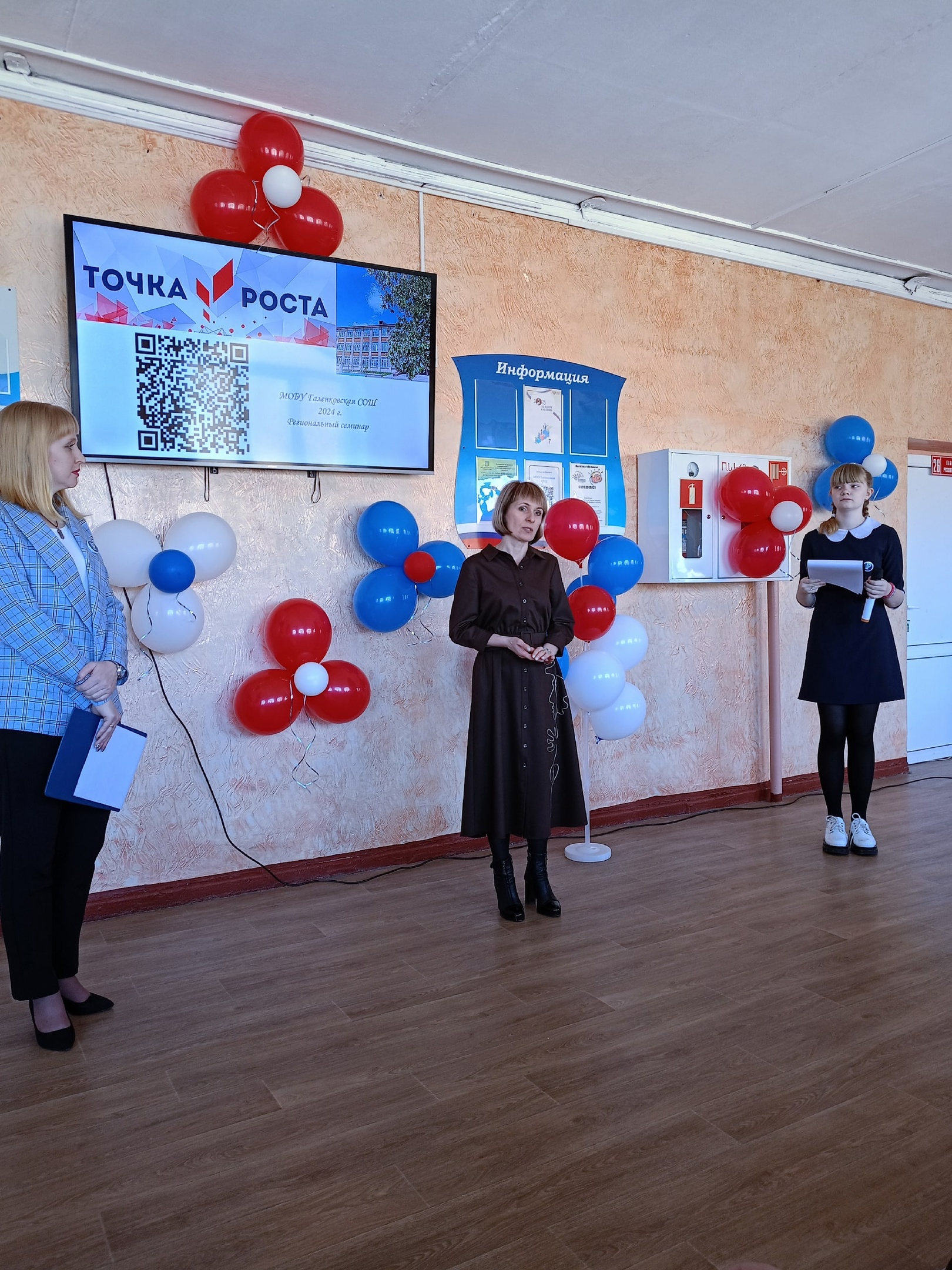 Директор школы Смирнова О.С. в своем выступлении на открытии семинара отметила, что в школе с 2023 года функционируют 4 кабинета «Точки роста»: физики, химии, биологии, технологии. Эти кабинеты задействованы как в урочное, так и во внеурочное время. На занятиях обучающиеся приобретают практические навыки, которые формируются посредством решения заданий по функциональной грамотности. Гостям был представлен видеоролик с фрагментами таких занятий. Девизом мероприятий по формированию функциональной грамотности с использованием оборудования «Точки роста» стали слова: «Знаю, умею, применяю».