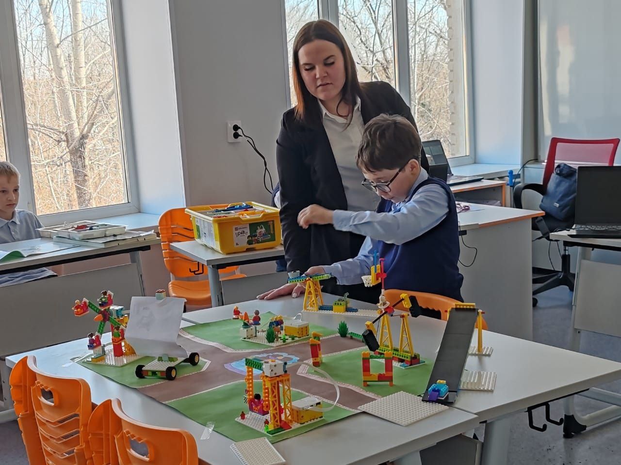 На третьей сессии Шевкун-Исаева Е. С., учитель технологии, поделилась опытом преподавания языка Scratch и для гостей семинара представила фрагмент занятия «Формирование креативного мышления на уроке технологии с использованием языка программирования Robbo Scratch». Наиболее увлеченные робототехникой ученики 10 класса под её руководством осваивают работу с роботом-манипулятором Jet Max, а те, кто помладше запускают робота под названием Клик. Учащиеся начальных классов не отстают от старших товарищей и под руководством Тихомировой Т. А. работают с LEGO Education, а на уроке технологии обучающиеся 3 класса создали поздравительную открытку к Дню смеха на RobboScratch.