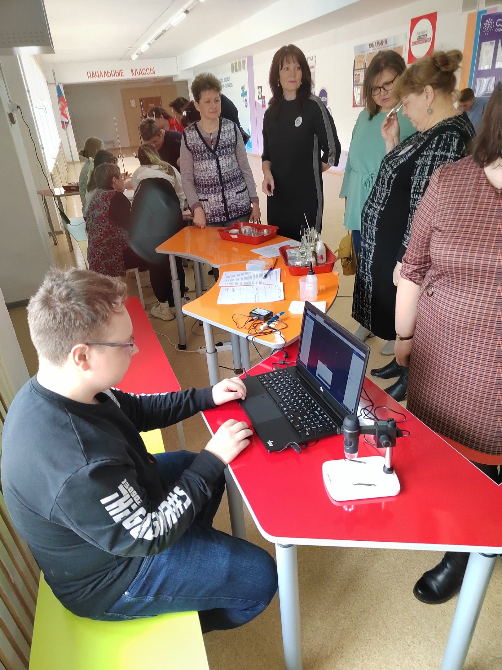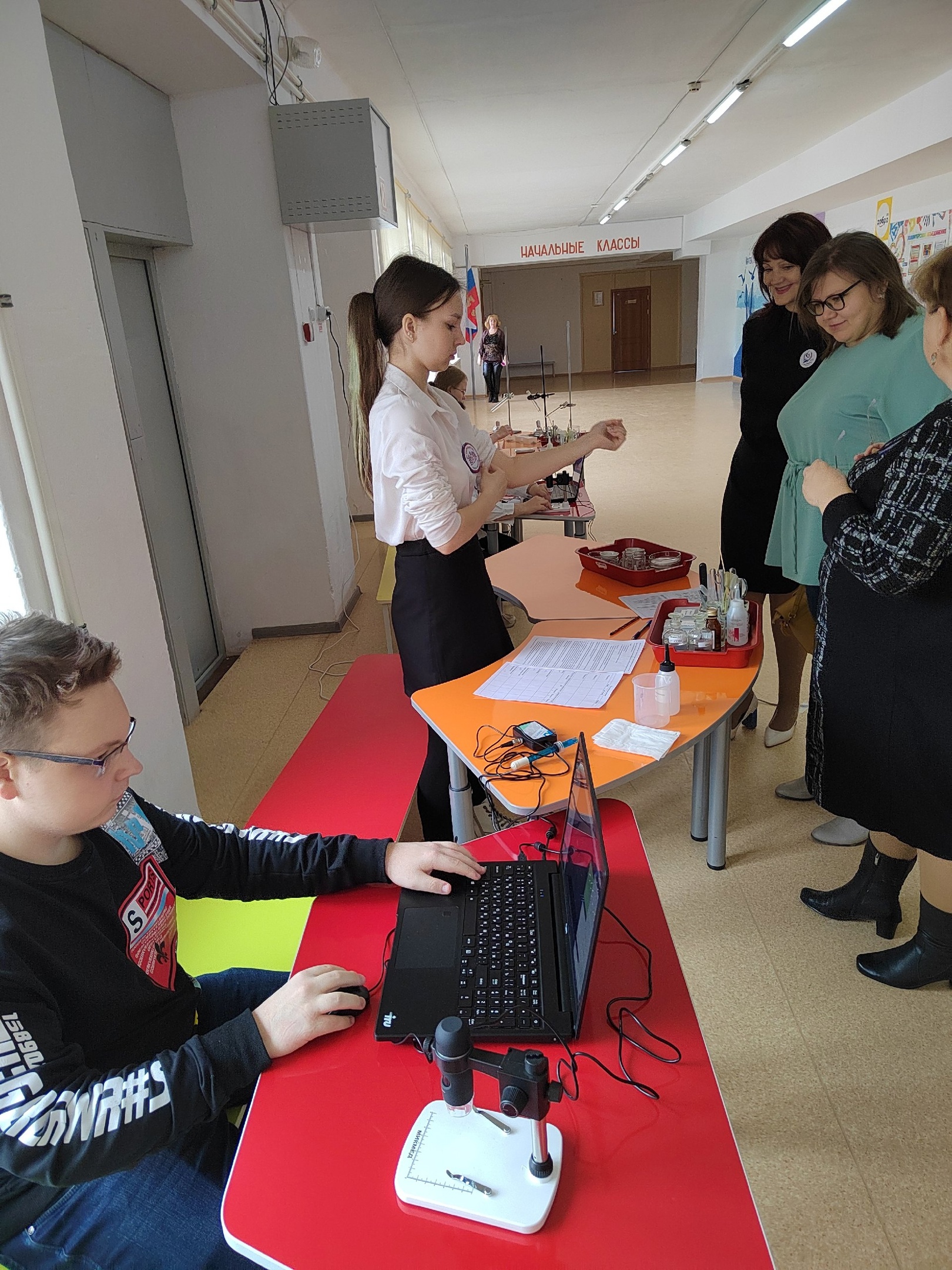 Открыла мероприятие директор школы Анна Анатольевна Чернова, которая рассказала о слиянии нескольких образовательных организаций в один большой центр и особенностях работы центра «Точка Роста» в таких условиях. Заместитель директора школы Беляева И.В. в своём выступлении отметила особенности работы учителей и школы в проведении экспериментов в лабораториях.