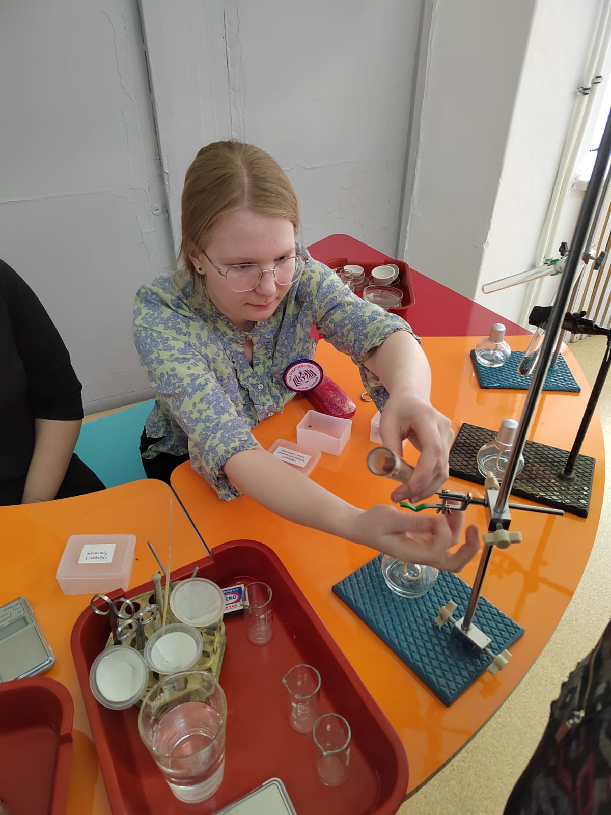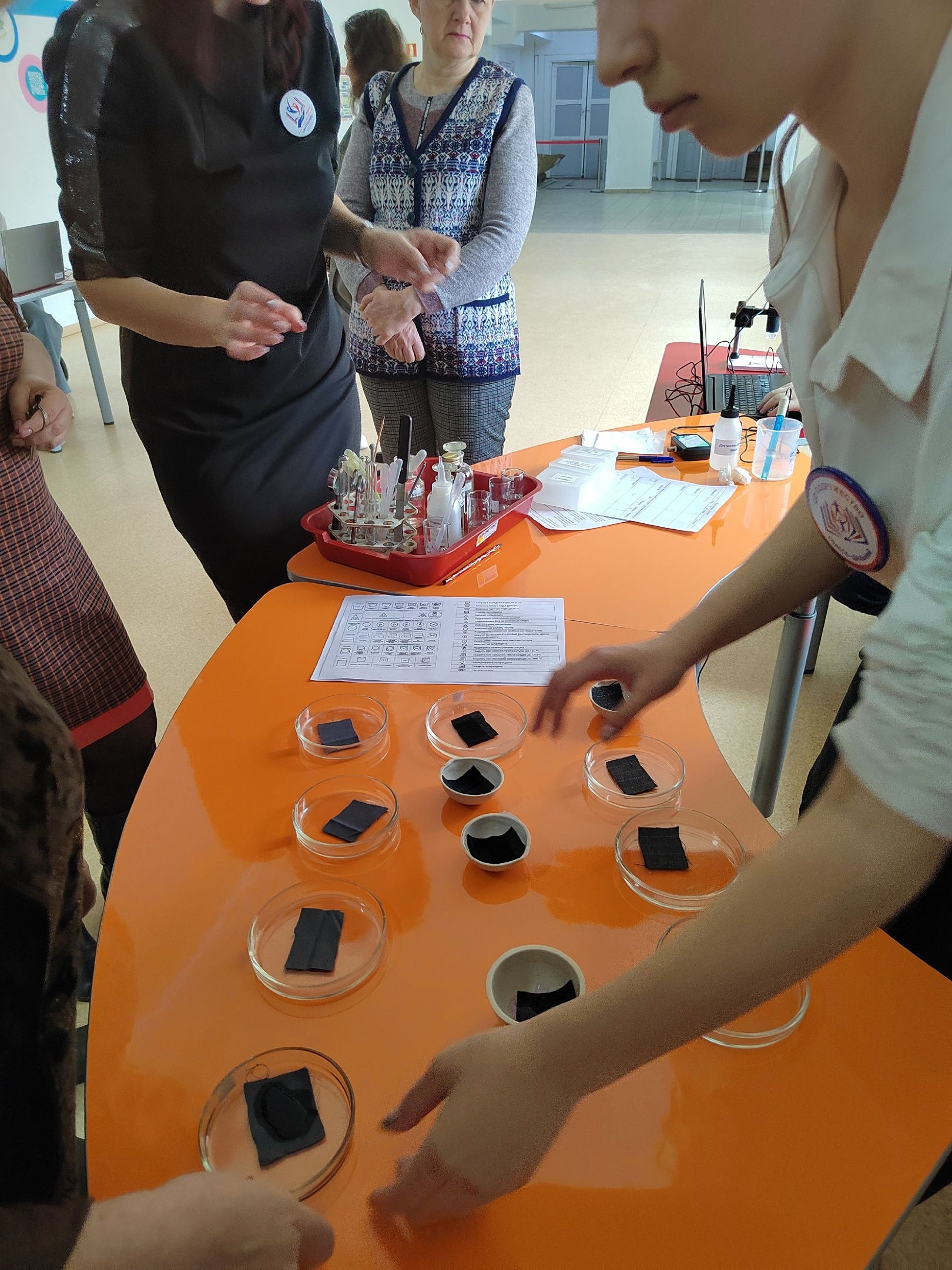В первой лаборатории ученики под руководством учителей химии Кудревской М.С. и Марковой Ю. А. определяли химические свойства: изучали строение ткани, измеряли её рН, устойчивость ткани к окрашиванию, действие химических веществ на различные ткани. Под руководством учителей физики Гостевой О.О. и Денисовой С.А. во второй лаборатории кипела работа по определению физических свойств ткани: определялась прочность ткани, электролизация, теплопроводимость и влажность. Одновременно ученики 4 класса изучали историю возникновения ткани. Итогом большой работы стали результаты экспериментов, которые ребята успешно представили на защите. Пришли к выводу, что наиболее подходящая ткань для создания школьной формы является трикотаж. С учителем технологии Крат А.В. ребята проектной мастерской создали выкройку по личным лекалам с использованием электронных программ.