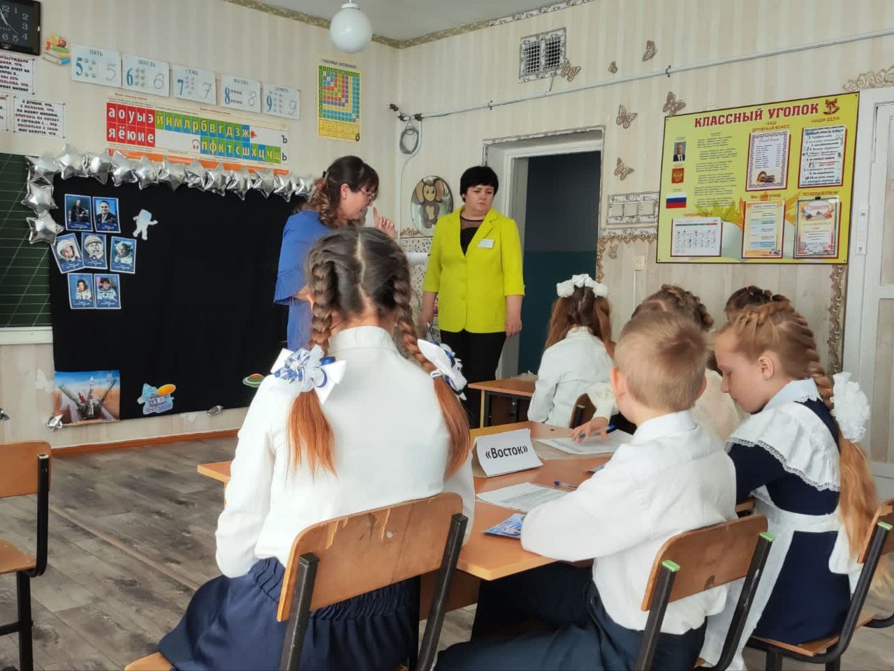 Иващенко В. Н., учитель начальных классов МБОУ СОШ № 1 п. Новошахтинский, продемонстрировала приёмы формирования финансовой, математической, естественно-научной и читательский грамотности на уроке окружающего мира в 3 классе (мини-исследование, деловая игра, корзина идей, кластер). Учителя начальных классов МБОУ СОШ с. Кремово Ященко А.П. и Скочиляс Ю. М. показали на примере несплошного текста “Билет в космос”) формирование читательской грамотности на уроке окружающего мира “Страна, открывшая путь в космос” в 4 классе. Кутас Е. В., учитель английского языка МБОУ СОШ с. Осиновка провела урок в 8 классе по теме «Спорт» с применением задания из электронного банка заданий.