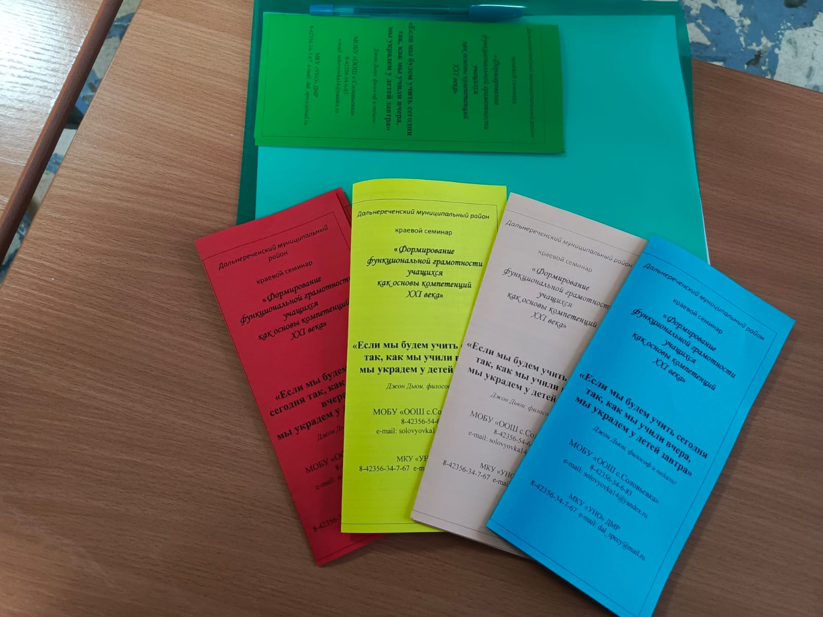 19 апреля на базе МОБУ «ООШ с.Соловьевка» Дальнереченского муниципального округа состоялся краевой семинар «Формирование функциональной грамотности учащихся как основы компетенций XXI века». На семинаре присутствовали 42 педагога из 5 муниципальных образований Приморского края: Пожарского, Красноармейского, Дальнереченского муниципальных округов, Лесозаводского и Дальнереченского ГО.