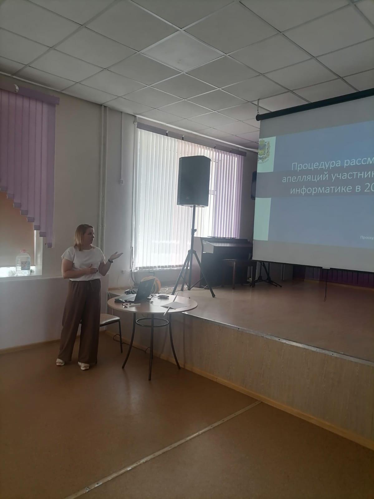 Об интерактивных формах подготовки к ОГЭ и ЕГЭ по информатике рассказала Шутова Елена Владимировна, учитель информатики ВК МБОУ «Центр Образования «Ступени» г. Владивостока». Проскурякова Вероника Игоревна, учитель информатики МБОУ «Лицей № 41 г. Владивостока» рассказала о процедуре рассмотрения апелляций участников ОГЭ по информатике в 2024 году.