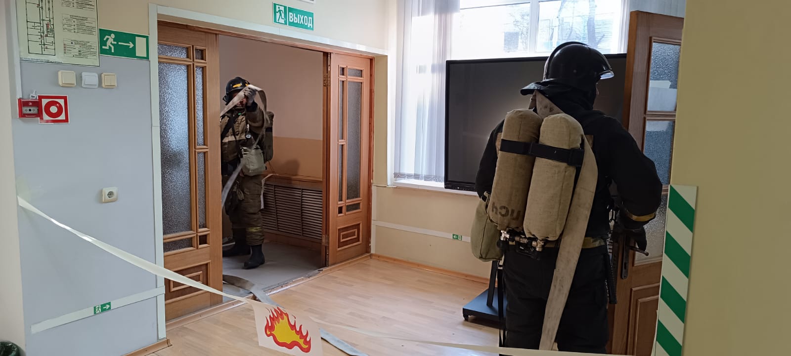 В ходе занятия было смоделировано возгорание электрической розетки. После срабатывания автоматической системы пожарной сигнализации эвакуация началась незамедлительно. Личный состав пожарно-спасательной части прибыл на место через 2 минуты 52 секунды после поступления сигнала на пульт диспетчера пожарной охраны.