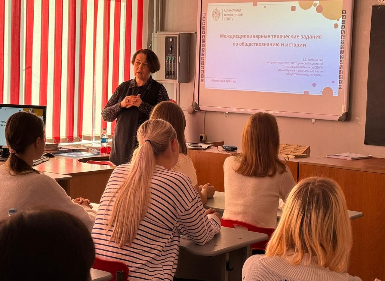 Представитель СПбГУ Евстифеева Елена Борисовна, координатор, член методической комиссии Олимпиады школьников СПбГУ по комплексу предметов история и обществознание «Гуманитарные и социальные науки», провела открытые мастер-классы по методике подготовки к междисциплинарным творческим олимпиадным заданиям по истории и обществознанию для мотивированных школьников на площадках МБОУ СОШ №19 г. Артёма и МБОУ СОШ № 3 г. Большой Камень. И если школьники города Артём уже были знакомы с актуальными междисциплинарными тенденциями интеллектуальных соревнований (представители СПбГУ в данный населенный пункт уже приезжали), то для школьников города Большой Камень данный опыт «погружения в мир Университета» был первым. Отрадно, что в МБОУ СОШ № 3 пришли одаренные старшеклассники со всех образовательных учреждений города!  Всего мастер-классы посетили более 50 старшеклассников!
