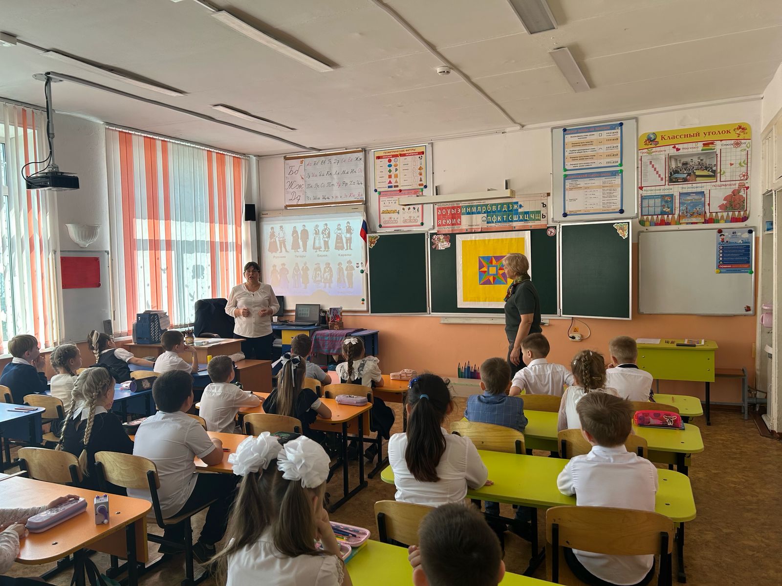 — Урок математики в 1 классе «Сравнение геометрических фигур. Изображение от руки на листе. Орнамент», учитель начальных классов Кирпичева Н.И., педагог дополнительного образования Маючих Е.В.