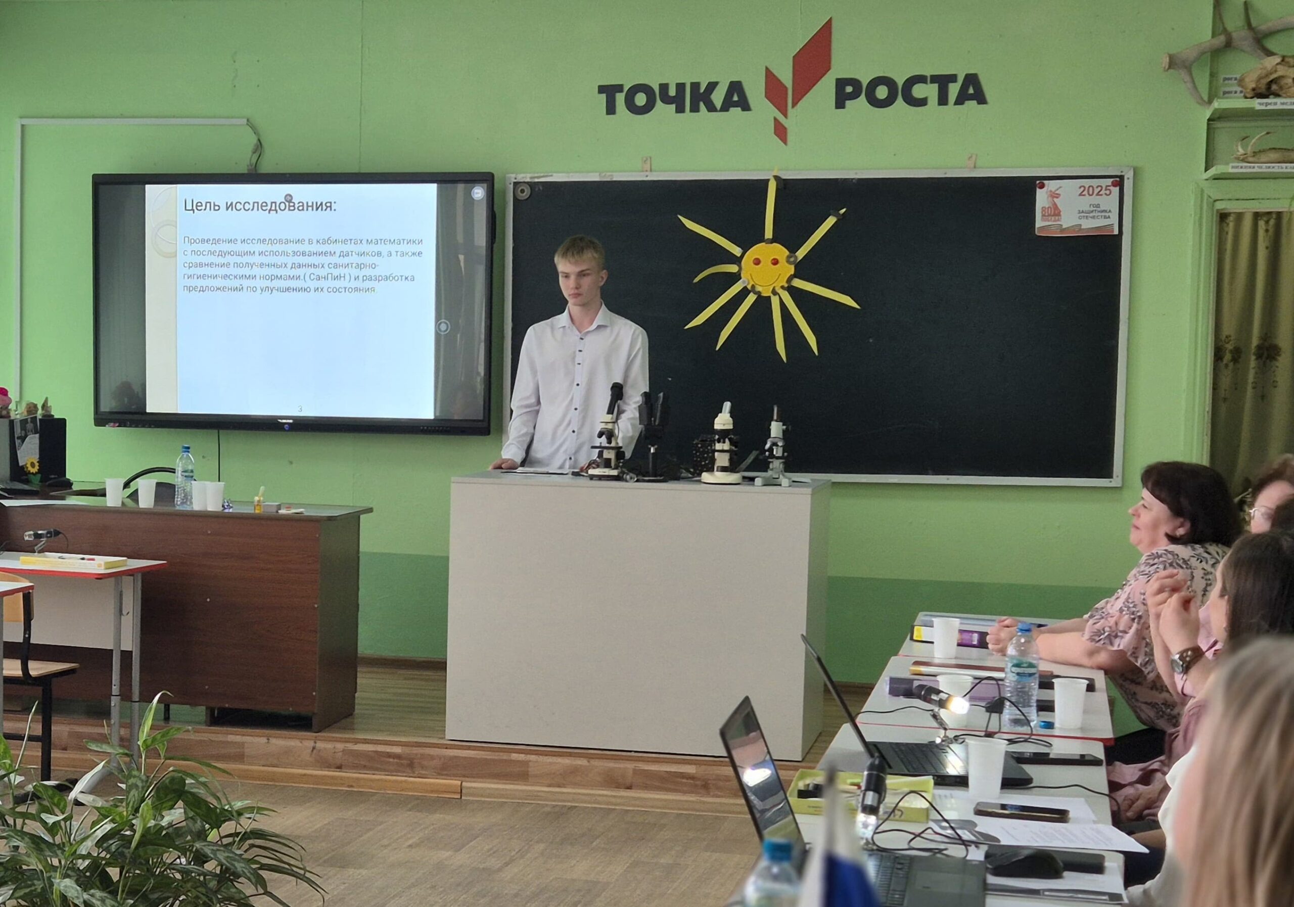 В кабинете химии руководитель центра «Точка роста» МКОУ СОШ п. Пластун Смирных В.В. презентовала работу центра за 2024-2025 учебный год. На сегодняшний день Центр представляет собой принципиально новое образовательное пространство, оснащенное современным оборудованием, готовый принимать в своих классах всех любителей исследований, науки, проектов и инноваций, всех тех, кто стремится познать мир современных технологий. Сегодня все учащиеся школы имеют возможность дополнительно прокачать свои знания по биологии, химии, физике параллельно с образовательным процессом.