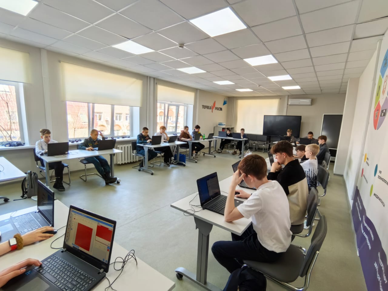 В этом учебном году, на базе учреждения дополнительного образования «Центринформ» по адресу Магнитогорская, 4, открылся еще один IT-куб во Владивостоке. Есенкина Анастасия Сергеевна, зав. лабораторией «IT-куб Владивосток», рассказала о возможностях и планах нового «IT-куба», о сотрудничестве со школами. Педагоги центра регулярно проводят мастер-классы для ребят. В центре представлены направления: