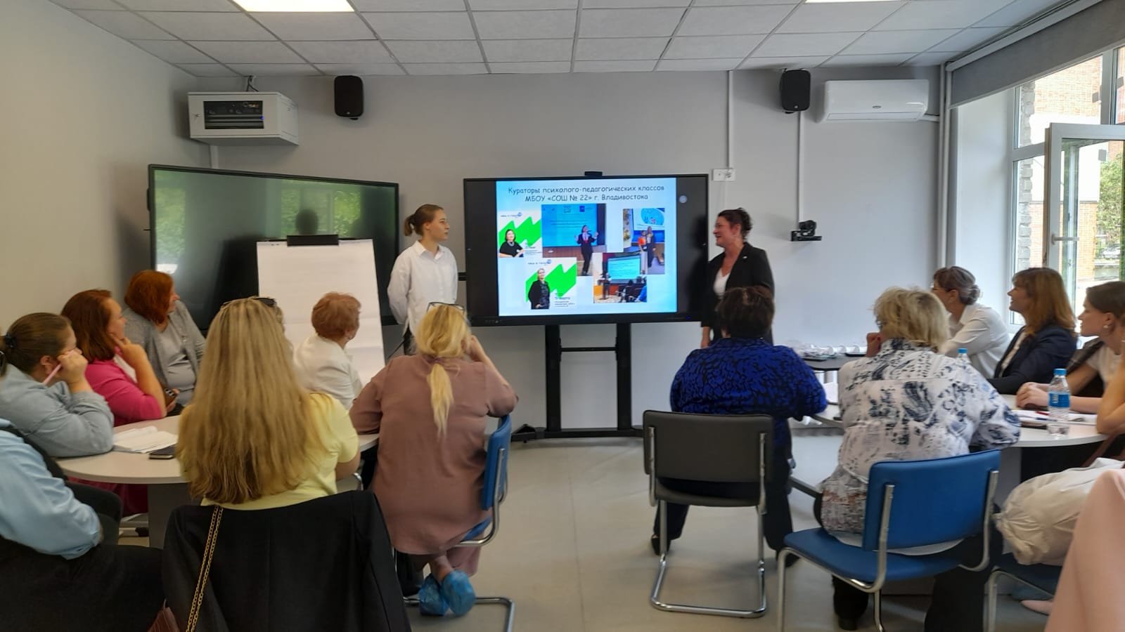 В рамках краевого научно-практического семинара «Итоги реализации кластерной политики в специализированных классах в 2024-2025 учебном году» состоялась секция «Психолого-педагогические классы», которая собрала более тридцати представителей методических служб, директоров, заместителей директора, кураторов общеобразовательных организаций, всех, кто заинтересован в развитии педагогического кластера в Приморском крае.