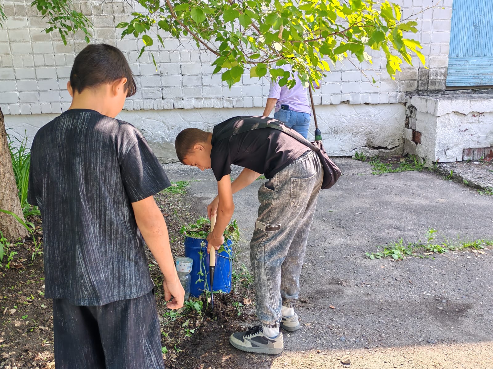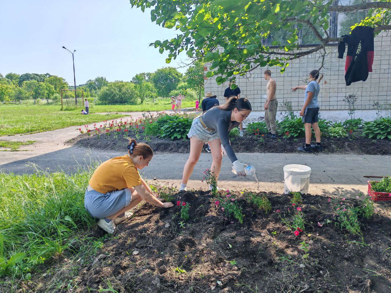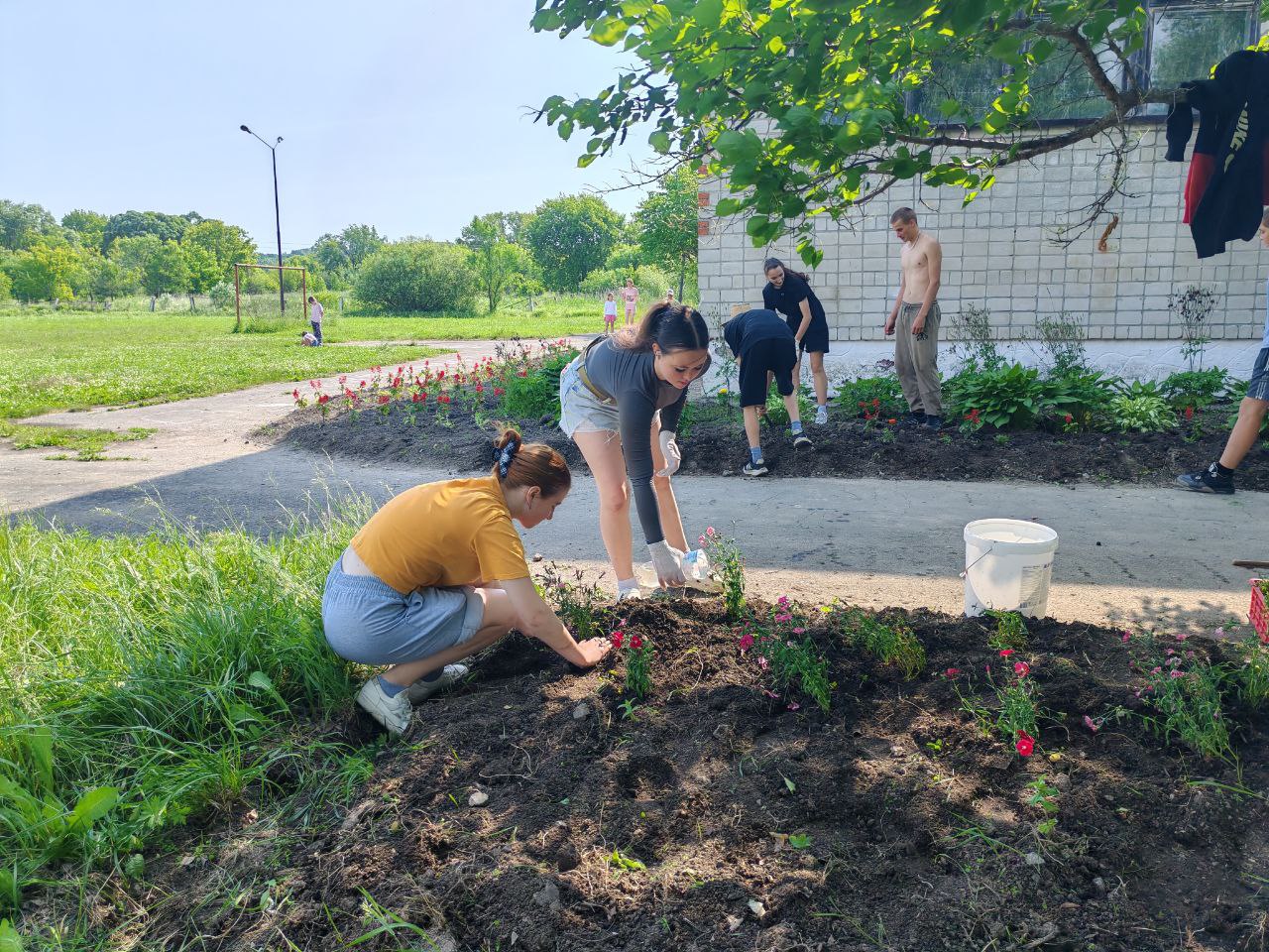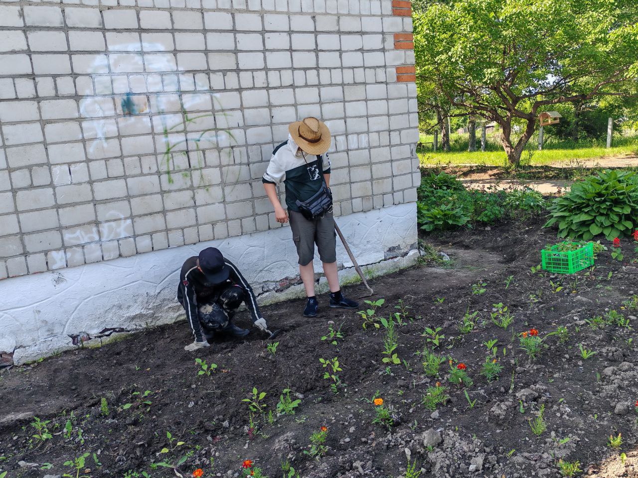 Ребята из агроклассов МБОУ СОШ № 4 с. Прохоры Спасского муниципального района и Пореченской школы Октябрьского муниципального округа занимаются благоустройством пришкольной территории.
