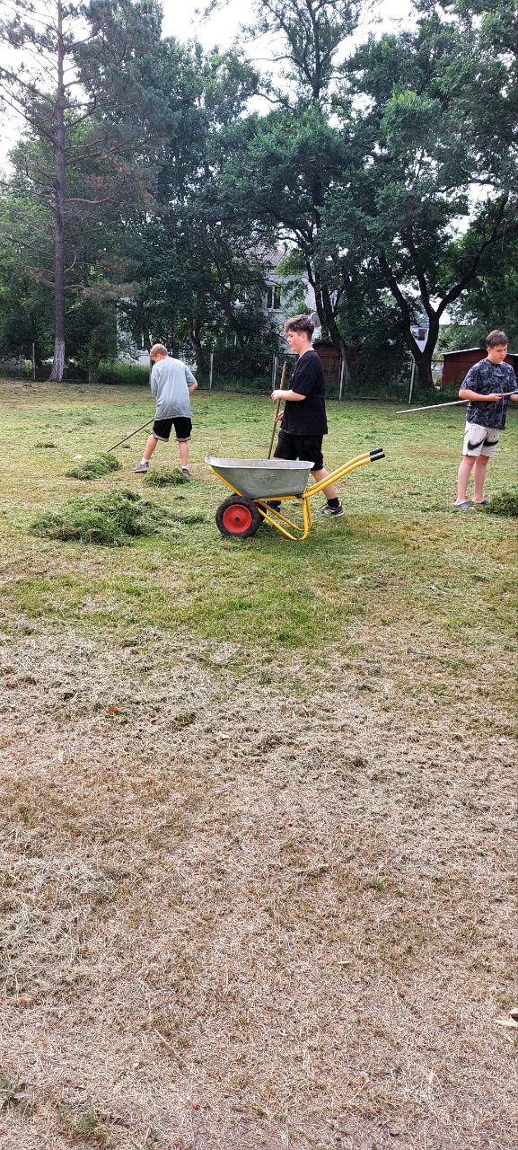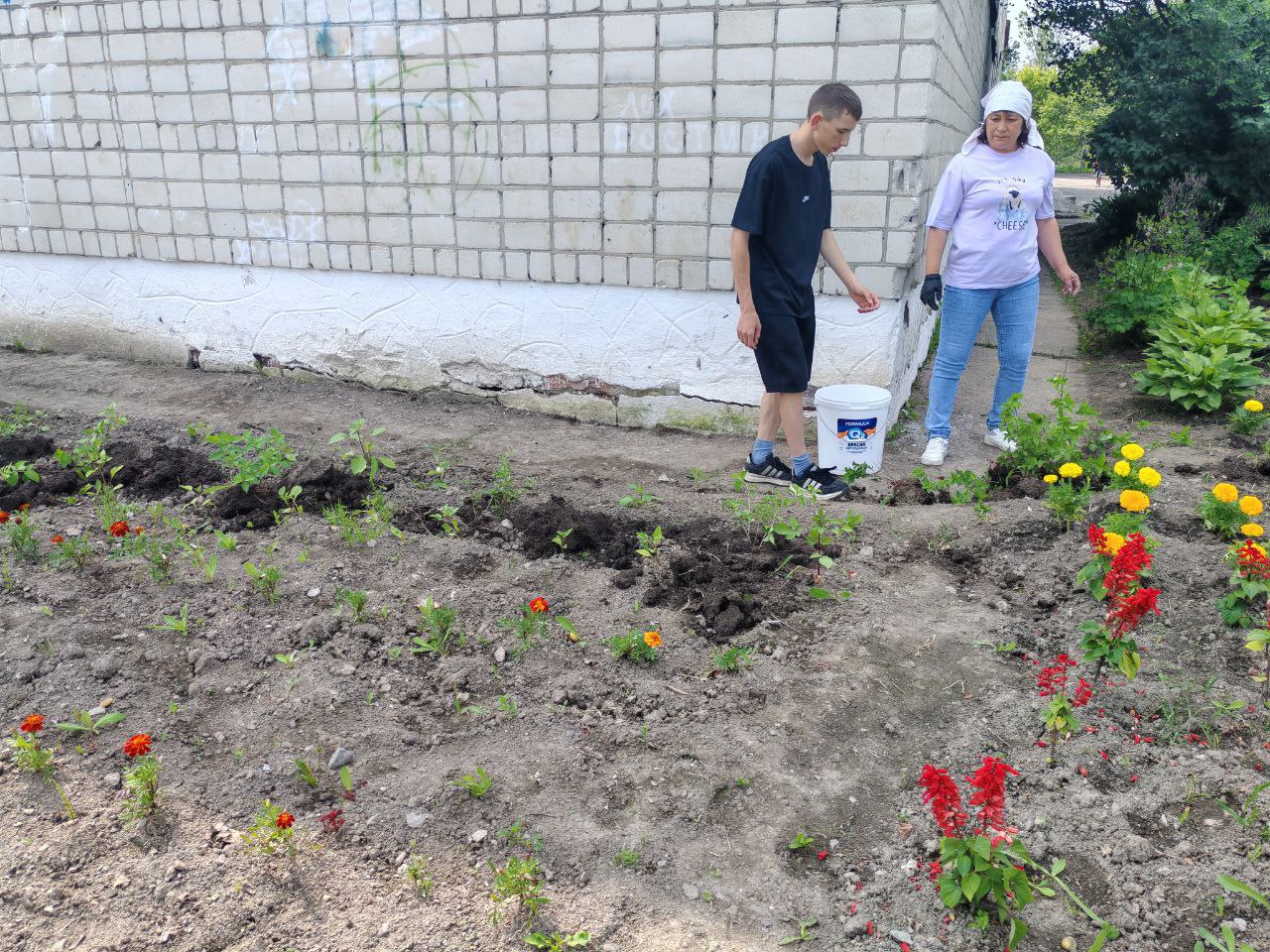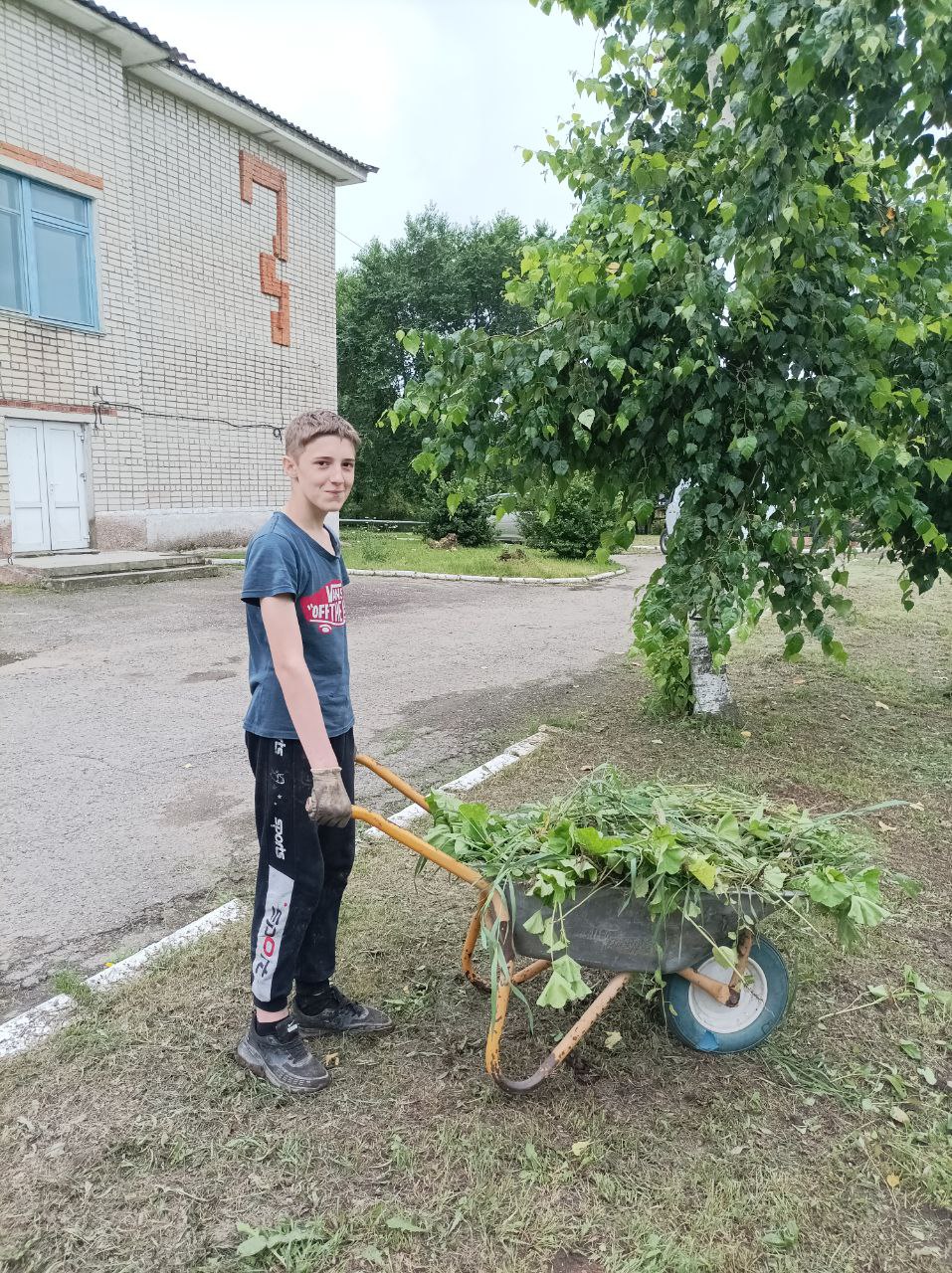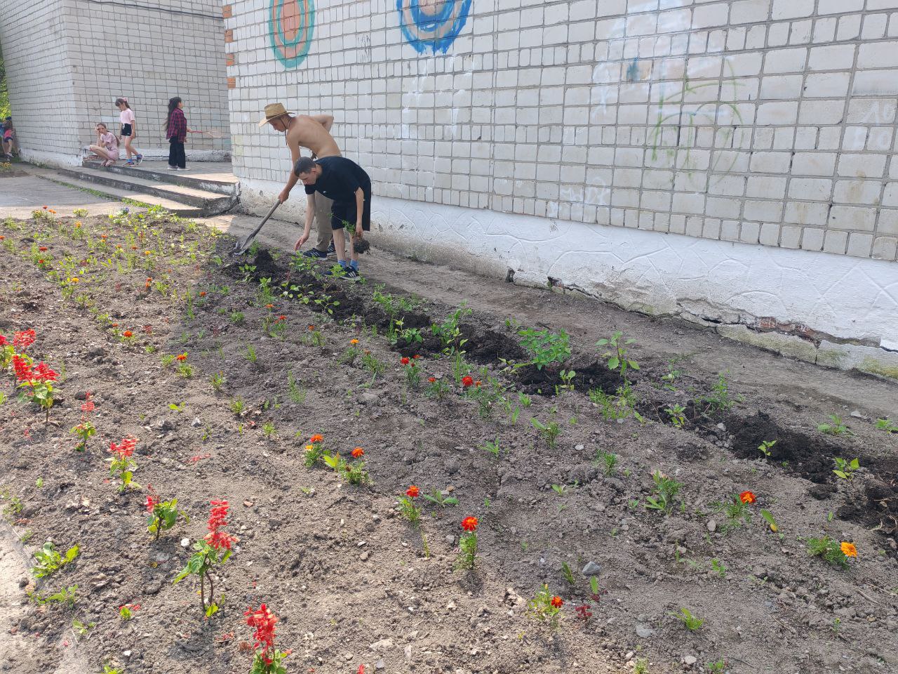Ребята из агроклассов МБОУ СОШ № 4 с. Прохоры Спасского муниципального района и Пореченской школы Октябрьского муниципального округа занимаются благоустройством пришкольной территории.