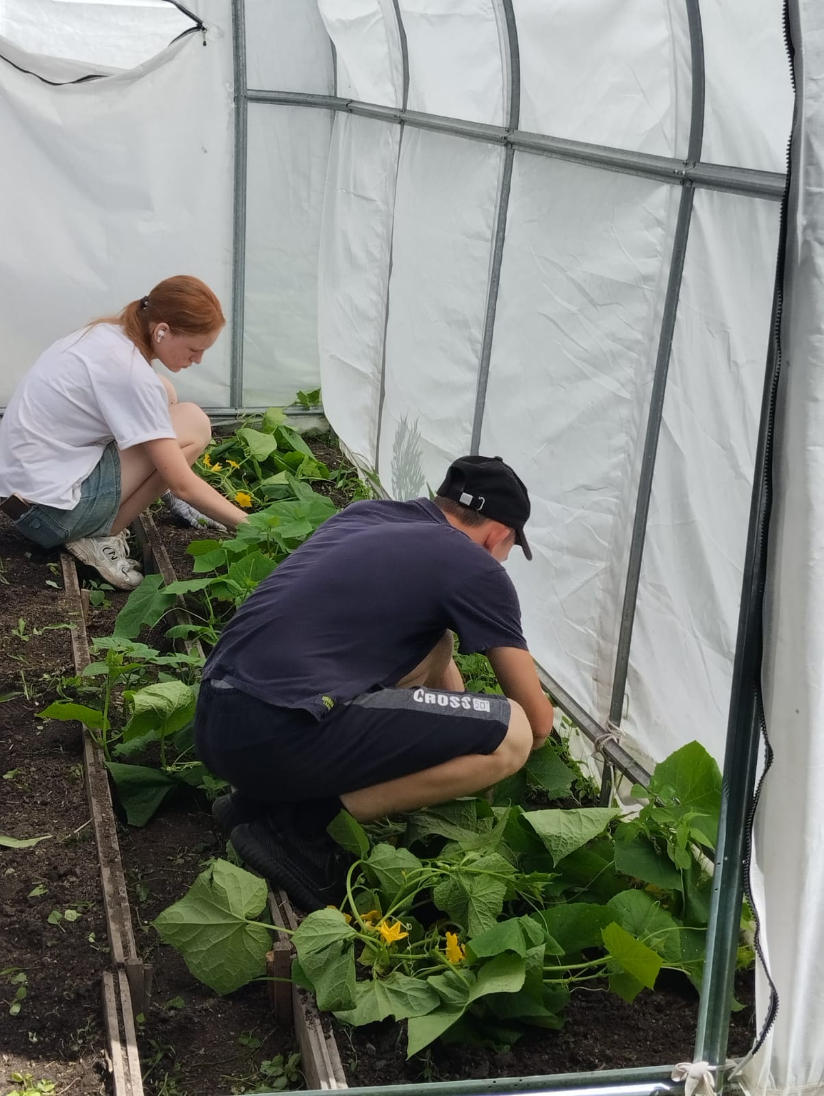 У агроклассников Владимировской СОШ Октябрьского муниципального округа летние каникулы проходят плодотворно и с пользой. Ребята работают на пришкольном участке, занимаются оформлением клумб, проводят мастер-классы для дошколят, приобщая их к АГРО, не забывают и сами постигать новое: знакомятся с современными профессиями в АПК и новыми агротехнологиями. Ребята в восторге от первого урожая огурцов, выращенных ими в теплице, которые поразили их своими размерами.