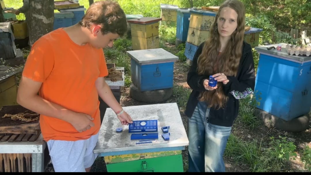 Ребята под руководством учителей-наставников разработали и распечатали на 3Д принтере прилётную доску для улья. Члены команды провели эксперимент на пасеке. Модульная прилётная доска пчёлам понравилась, постепенно они к ней привыкли и спокойно перемещались через ячейки, которые задерживают трутней, маток при роении и препятствуют проникновению азиатских шершней в улей.