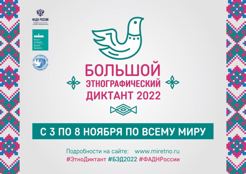 С 3 по 8 ноября 2022 года в седьмой раз пройдет Международная просветительская акция «Большой этнографический диктант». Ежегодно жители Приморского края активно присоединяются к Акции.  Диктант проводится в канун Дня народного Единства в онлайн и офлайн форматах. Организатором Большого этнографического диктанта является Федеральное агентство по делам национальностей и Правительство Приморского края.