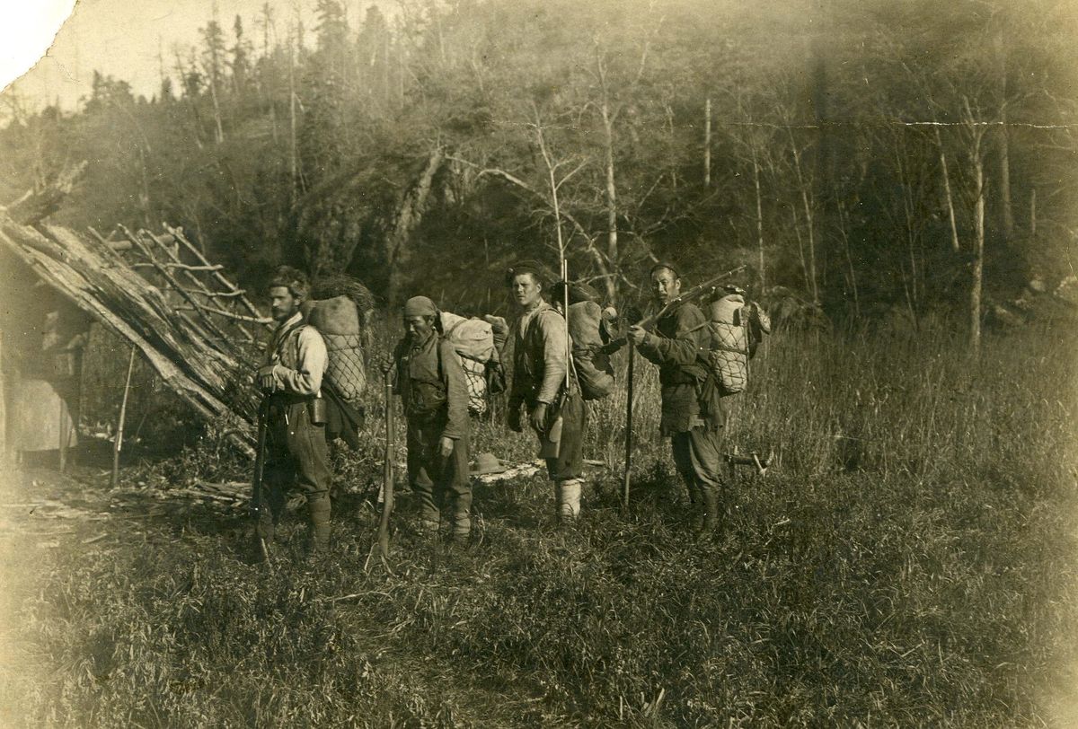 В.К. Арсеньев - первый слева, Дерсу Узала - второй слева, с участниками экспедиции 1906г на Сихотэ Алинь