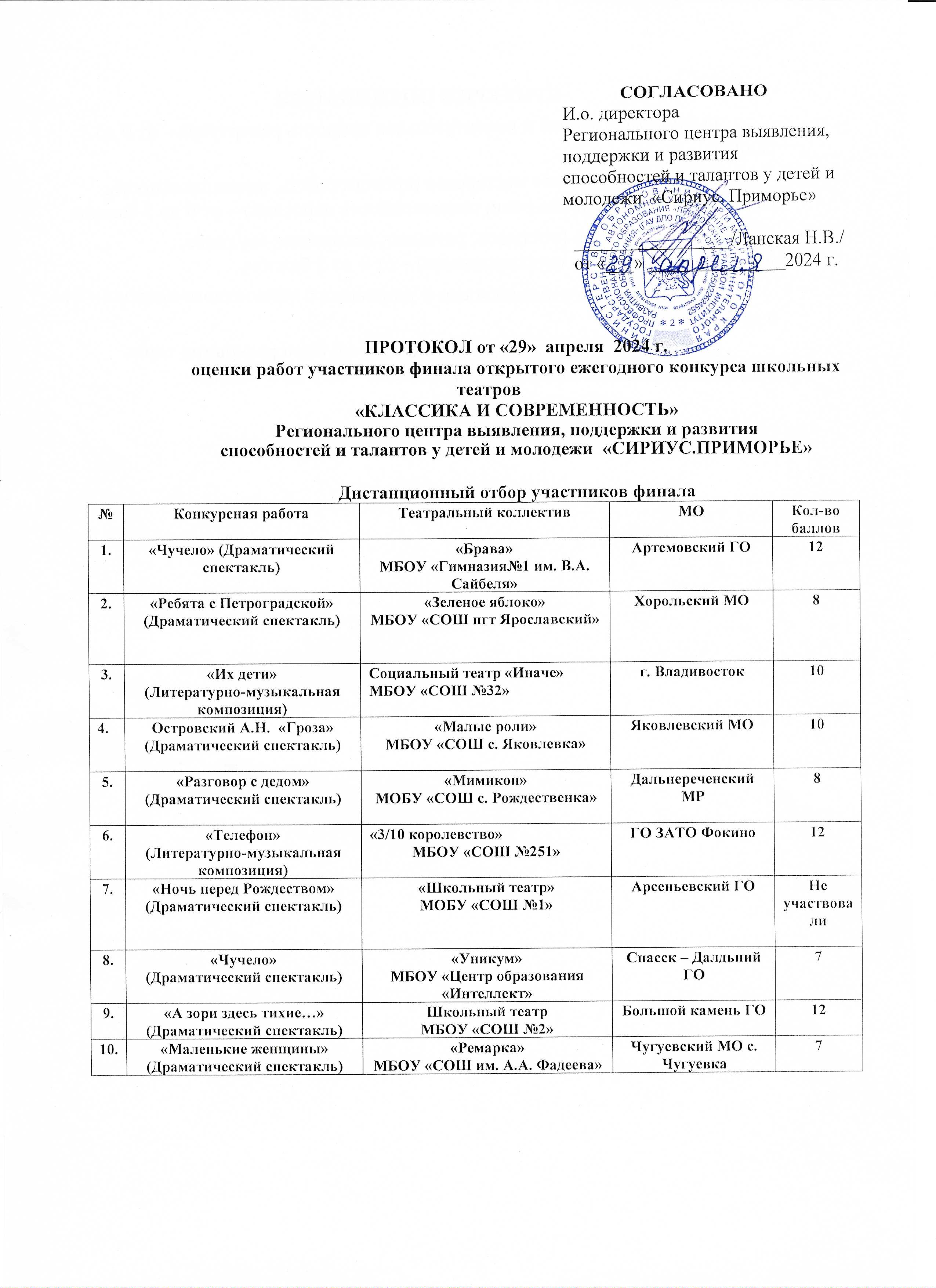 29 апреля стал самым важным днем для участников конкурса, потому что в этот день стало ясно, кто победитель. И таковыми явились школьные театры из Артема, Большого Камня, Яковлевки.
