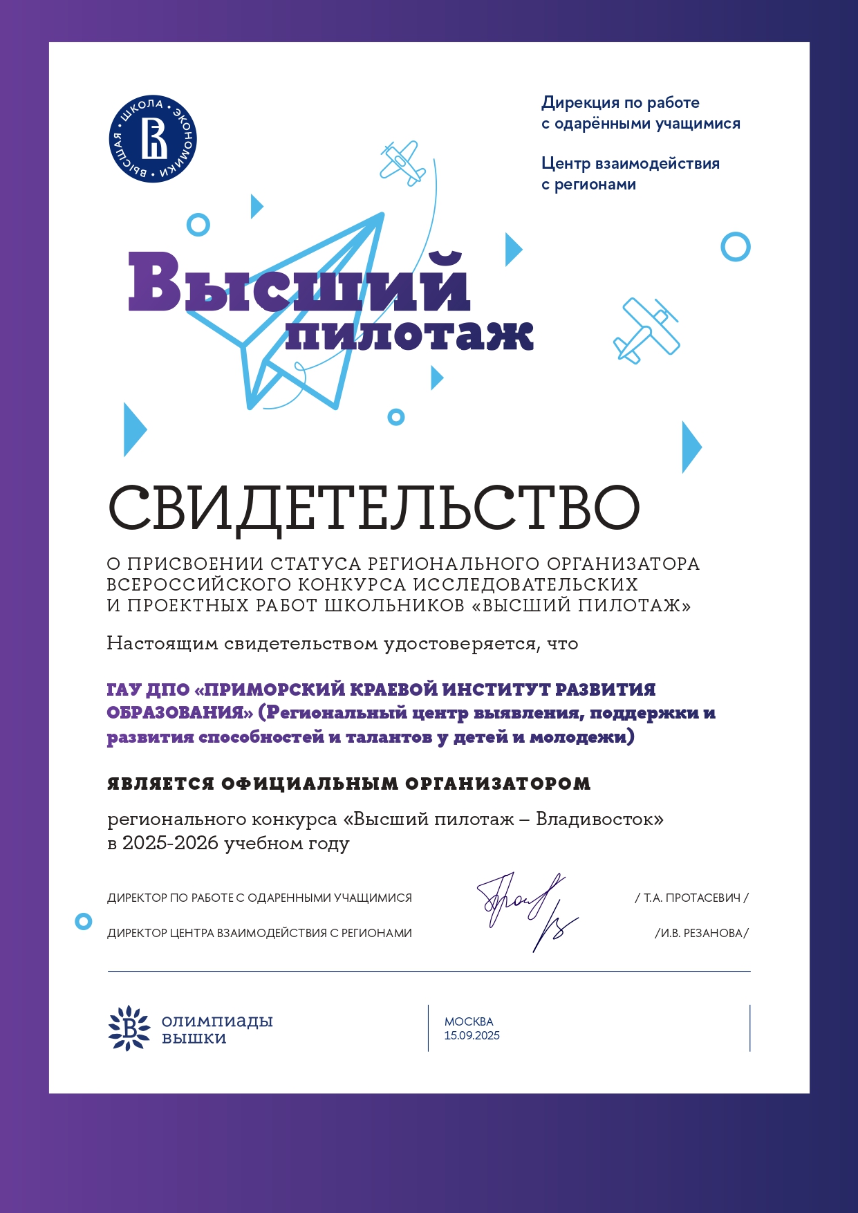 Объявляется прием работ на Региональный конкурс «Высший пилотаж – Владивосток».